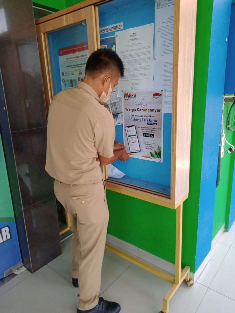 Dalam akhir koordinasi, KPU Karanganyar memperkenalkan aplikasi Lindungi Hakmu. Aplikasi tersebut bisa diunduh langsung melalui ponsel sehingga memudahkan masyarakat untuk mengetahui hak pilihnya sudah tercatat atau belum. Selanjutkan KPU Karanganyar menyerahkan poster Lindungi Hakmu untuk ditempel di papan pengumuman agar dapat diakses masyarakat. (HRN).