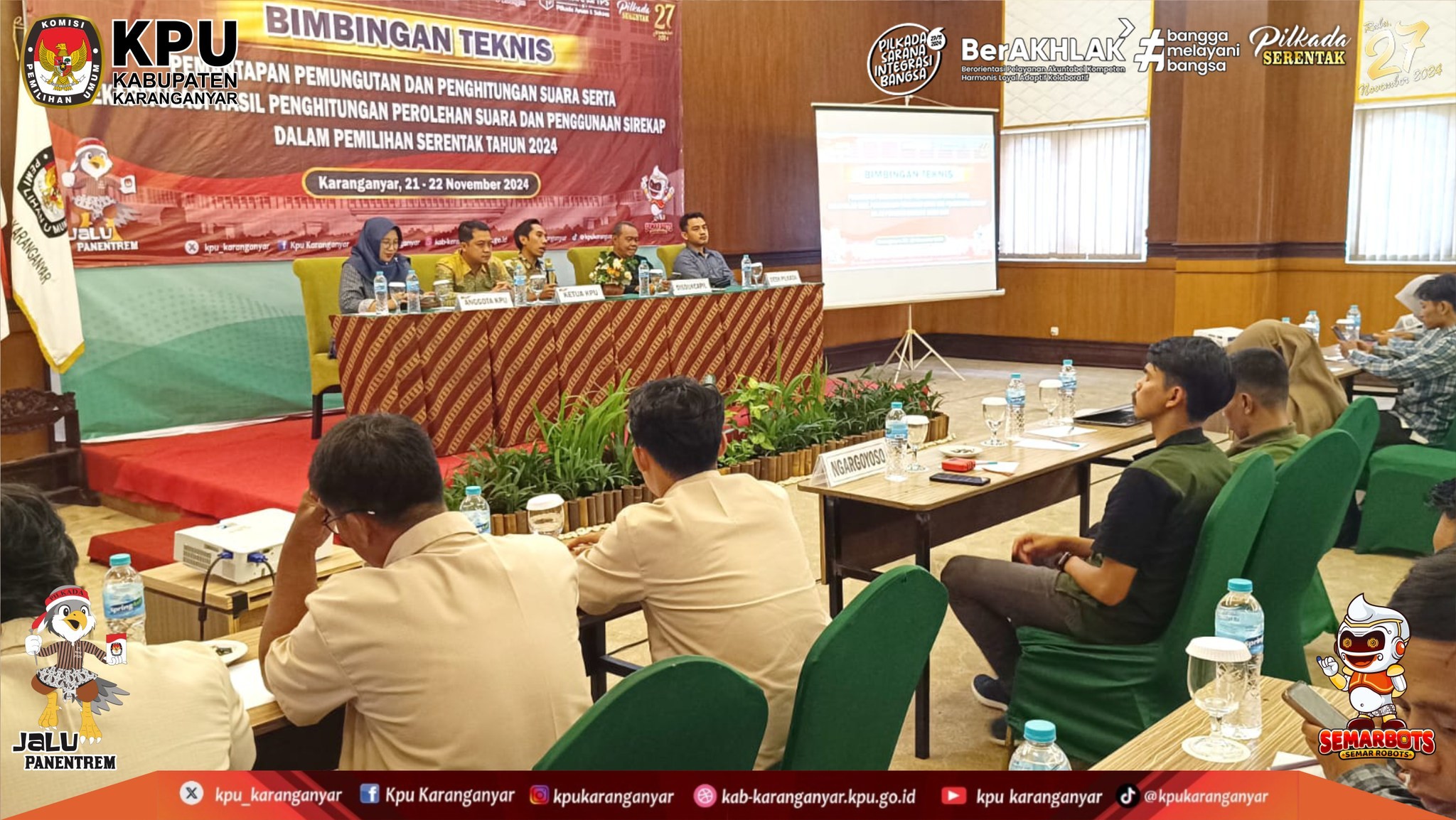 KPU Kabupaten Karanganyar Melaksanakan Bimbingan Teknis Pemantapan Pemungutan dan Penghitungan Suara Serta Rekapitulasi Hasil Penghitungan Perolehan Suara dan Penggunaan Sirekap dalam Pemilihan Serentak Tahun 2024 (Kamis - Jumat, 21 - 22 November 2024)