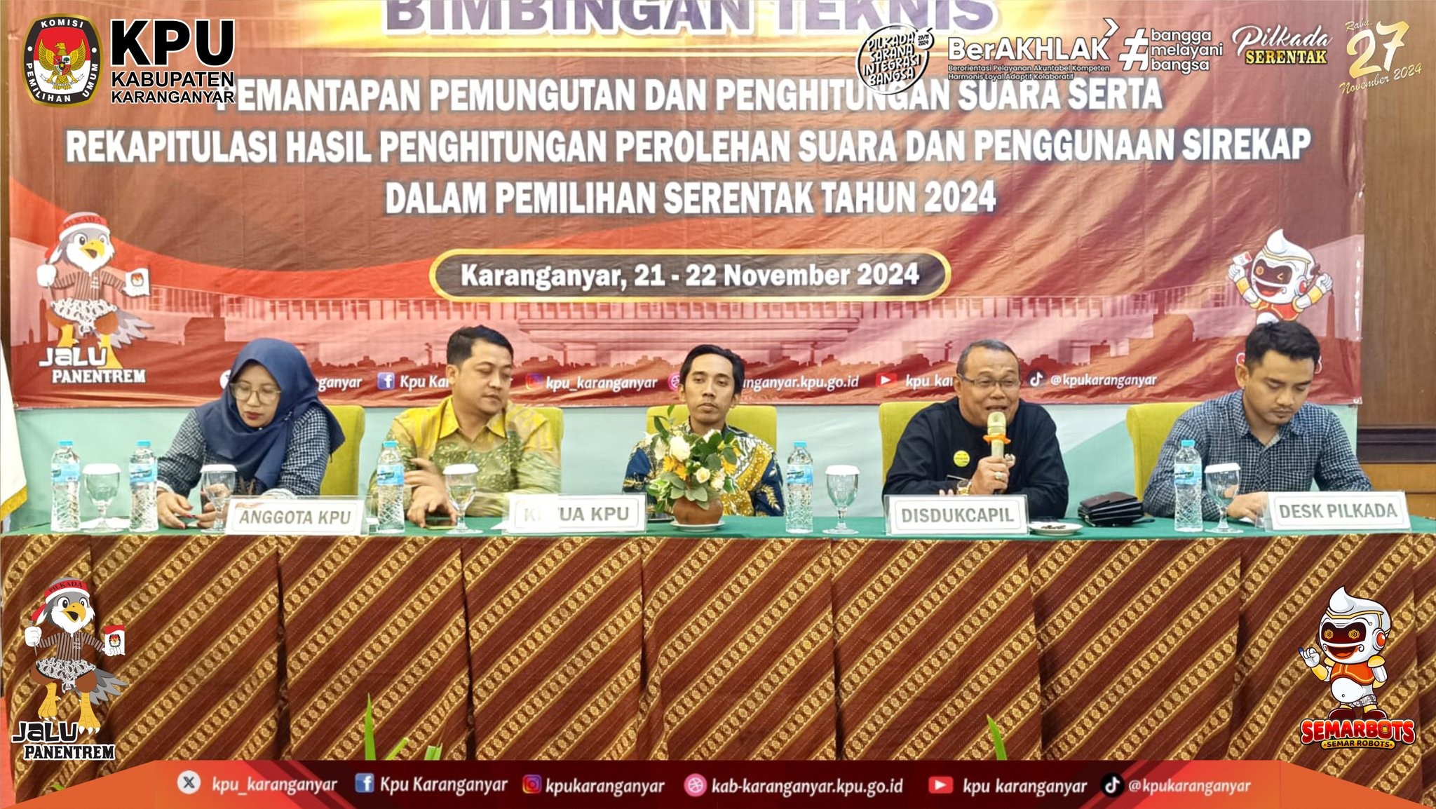 KPU Karanganyar Melaksanakan Bimbingan Teknis Teknis Pemantapan Pemungutan dan Penghitungan Suara Serta Rekapitulasi Hasil Penghitungan Perolehan Suara dan Penggunaan Sirekap Pilkada 2024