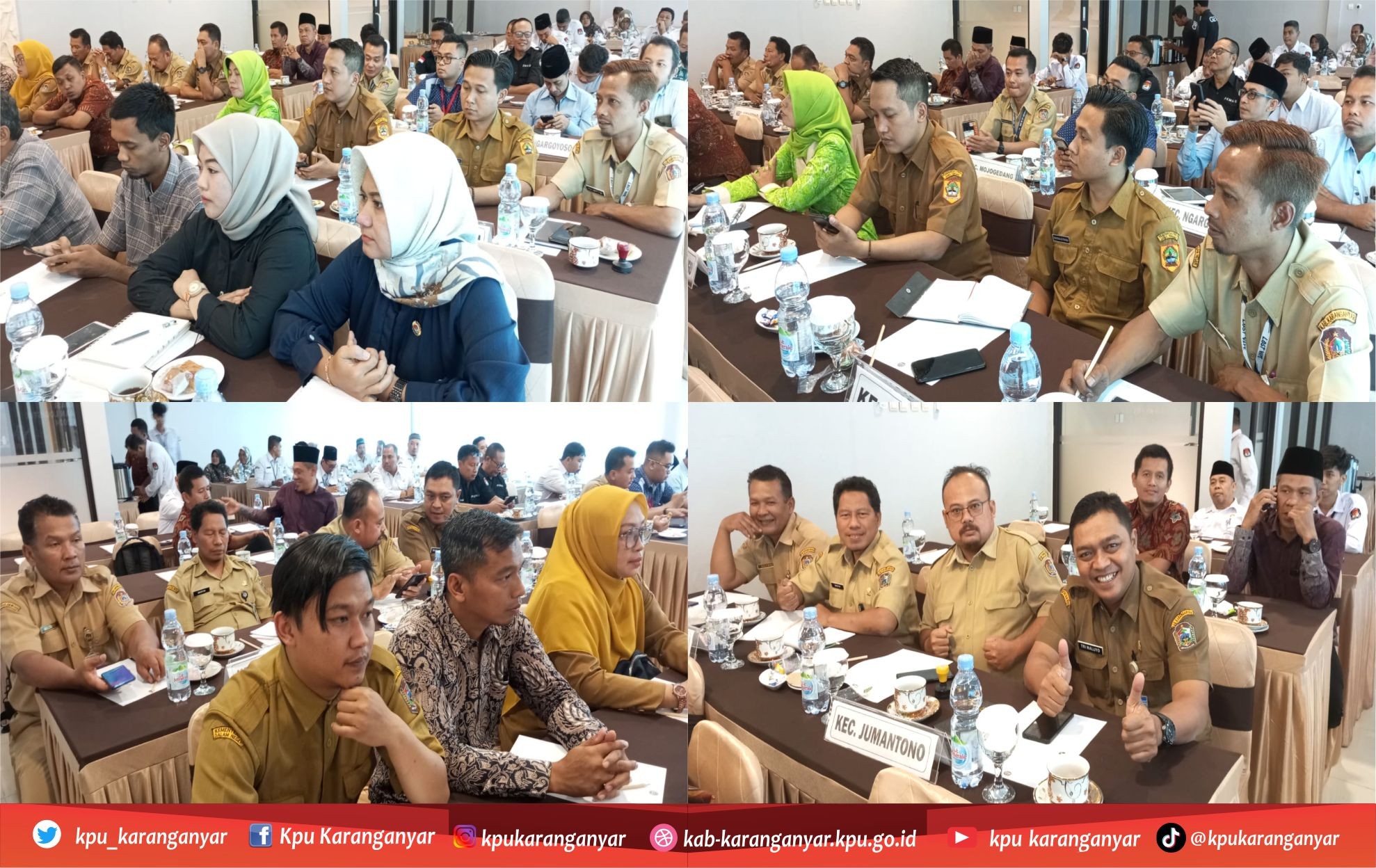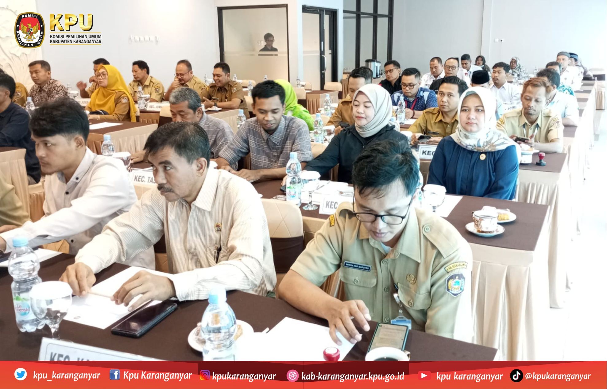 Kegiatan ini dihadiri oleh Ketua dan Anggota KPU Kabupaten Karanganyar, Sekretaris, beserta jajaran sekretariat KPU kabupaten Karanganyar. Kegiatan rapat koordinasi persiapan pengelolaan logistik ini diikuti oleh Ketua Panitia Pemilihan Kecamatan dan Anggota Panitia Pemilihan Kecamatan Divisi Teknis Penyelenggaraan Se- Kabupaten Karanganyar. Selain itu juga turut mengundang dinas/instansi terkait yaitu Kepala Badan Keuangan Daerah Kabupaten Karanganyar dan Asisten Administrasi Umum Sekretariat Daerah Kabupaten Karanganyar. (AB)