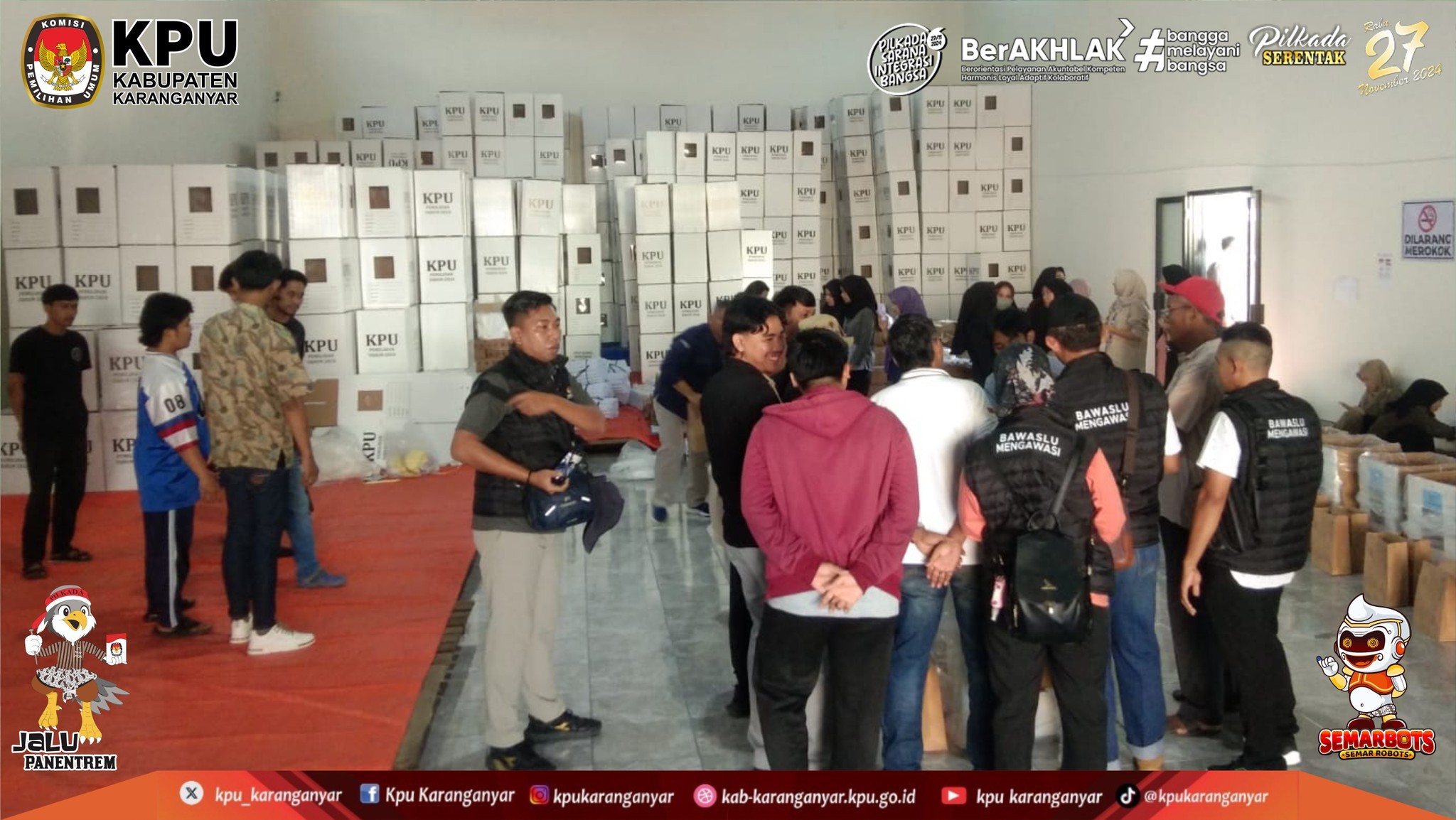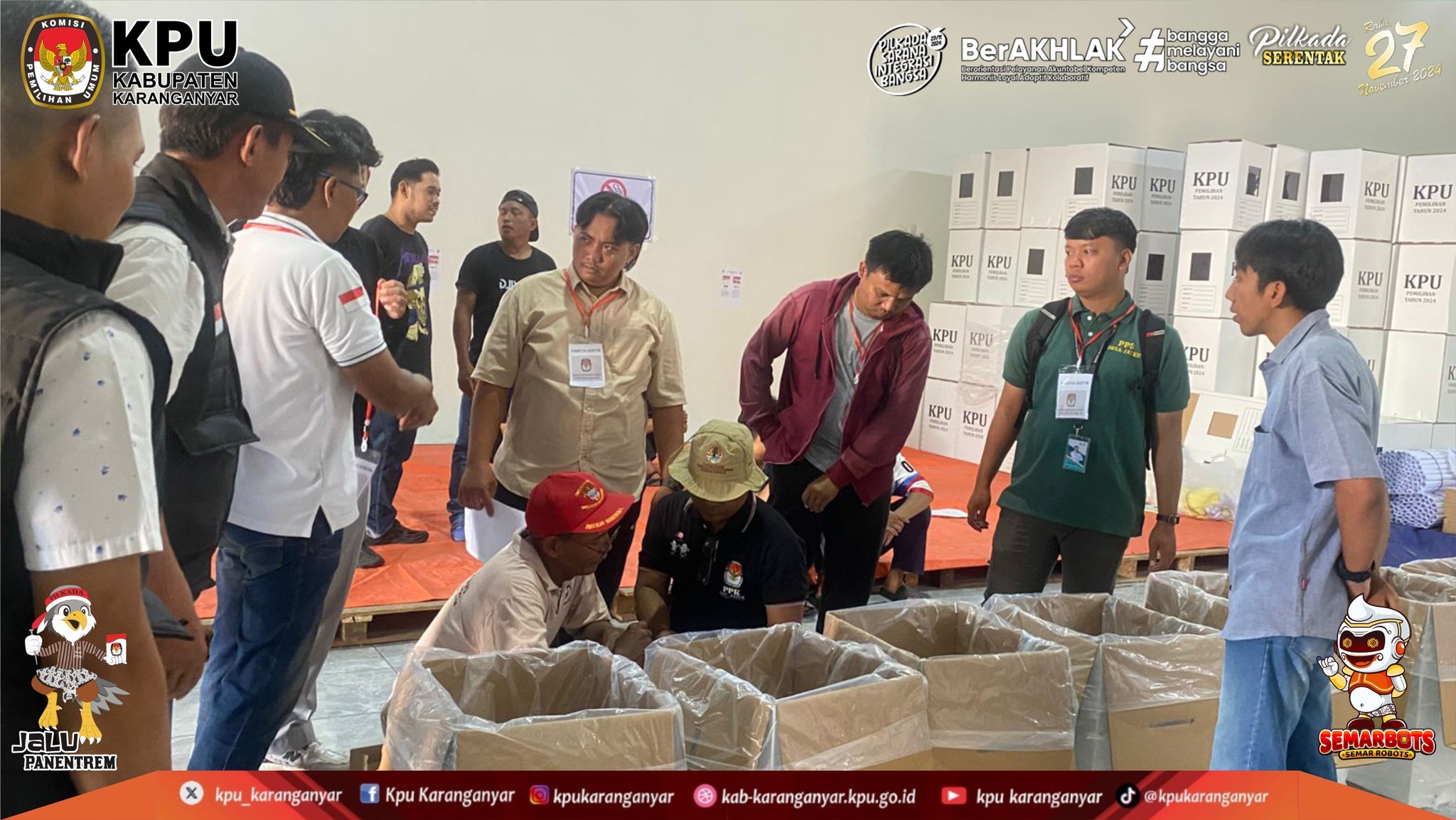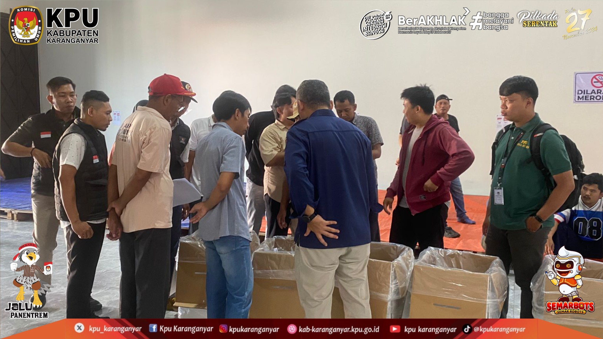 KPU Kabupaten Karanganyar Melaksanakan Pengarahan Persiapan Setting, Packing dan Checking Surat Suara Pemilihan Bupati dan Wakil Bupati Karanganyar Tahun 2024, (Sabtu, 9 November 2024)
