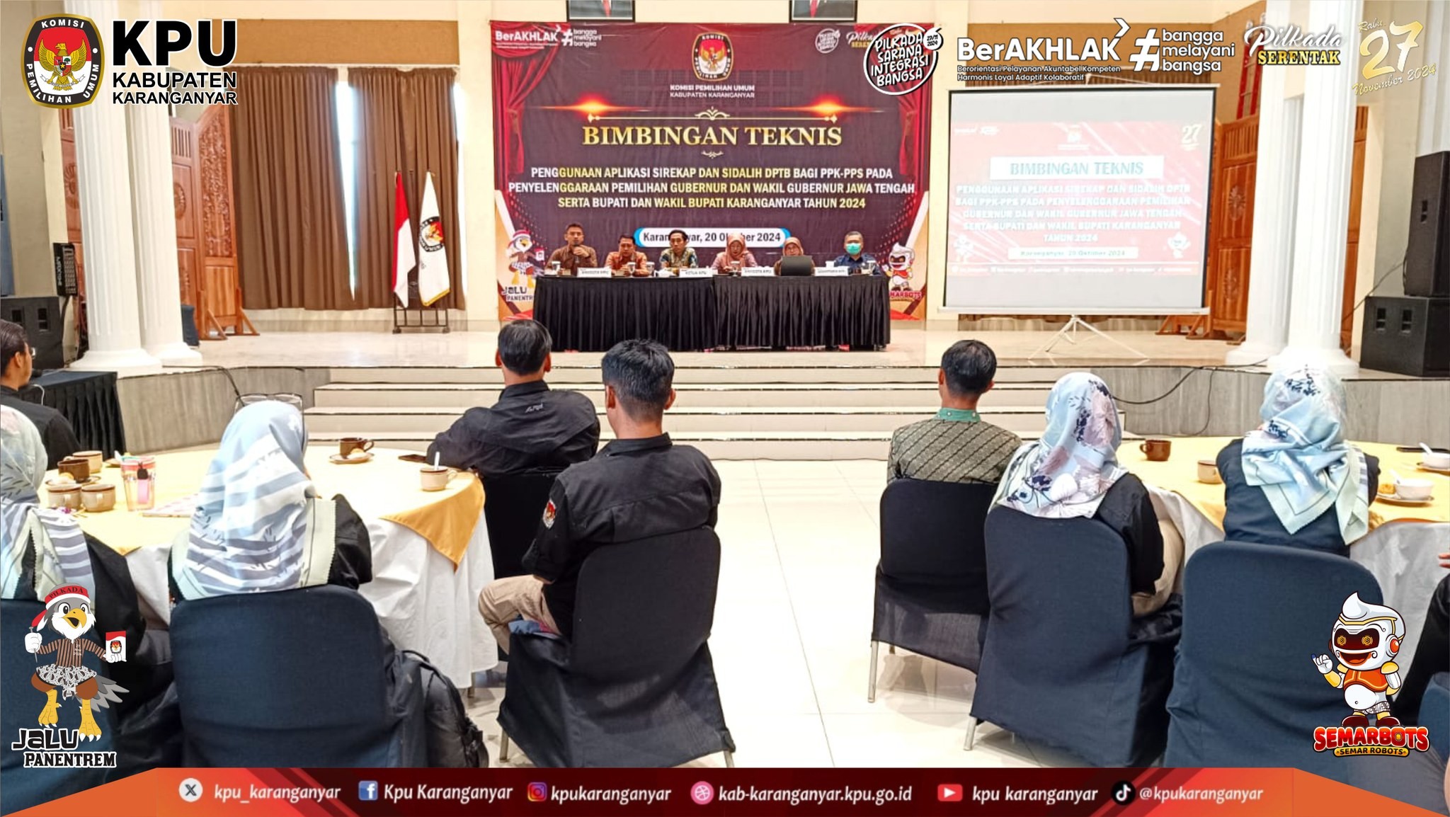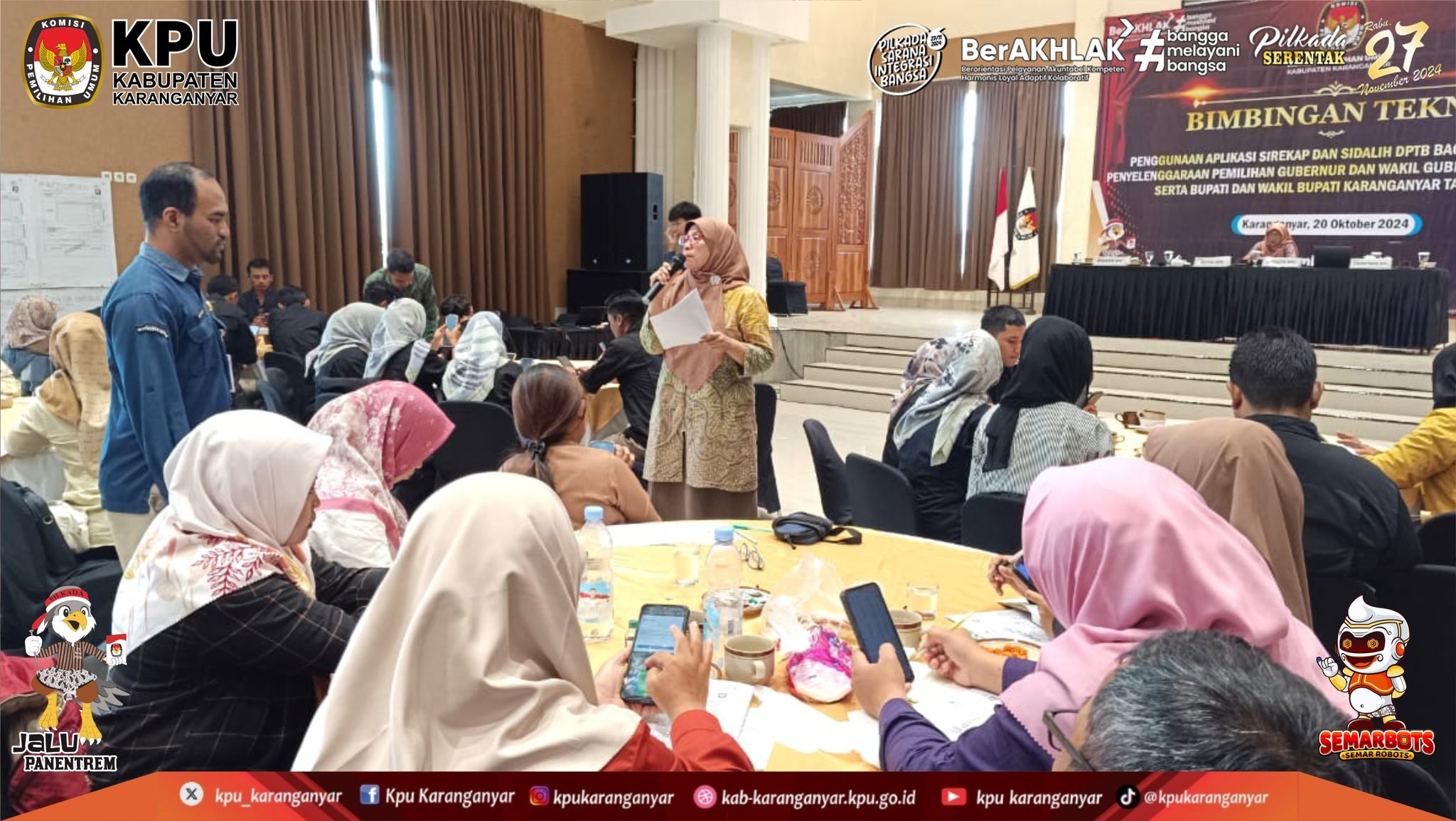 KPU Karanganyar Menggelar Bimbingan Teknis Penggunaan Aplikasi Sirekap dan Sidalih DPTb bagi PPK-PPS Pada Pilkada Serentak Tahun 2024, (Minggu, 20 Oktober 2024)