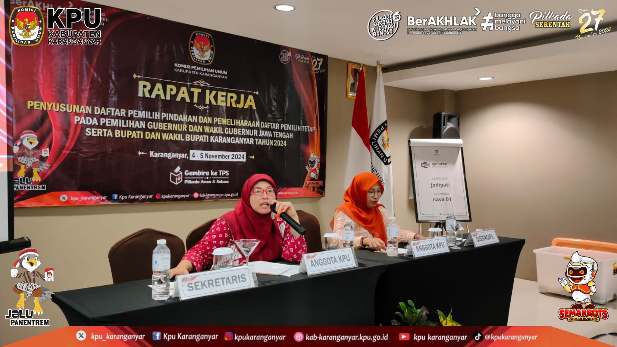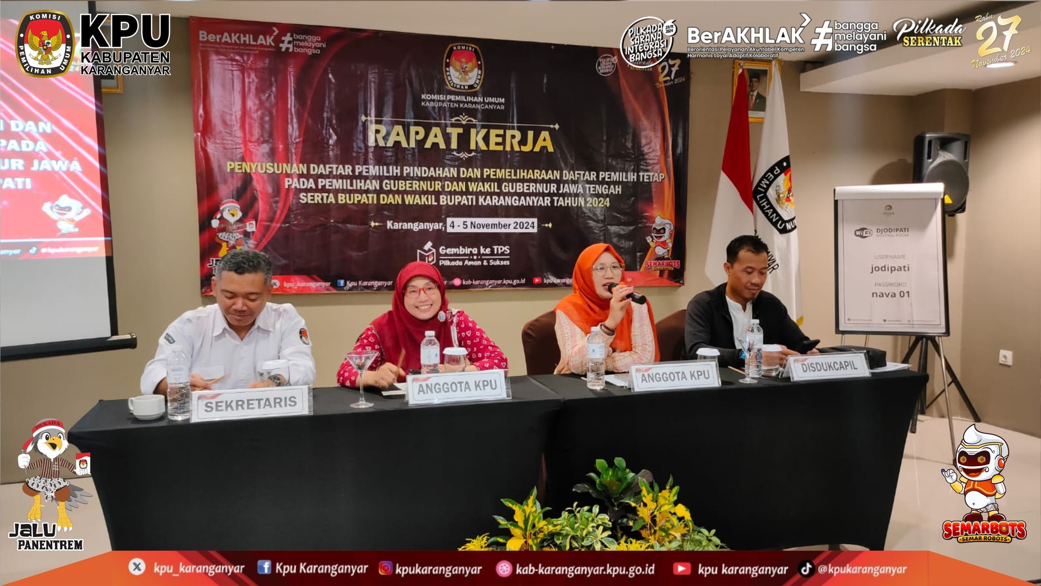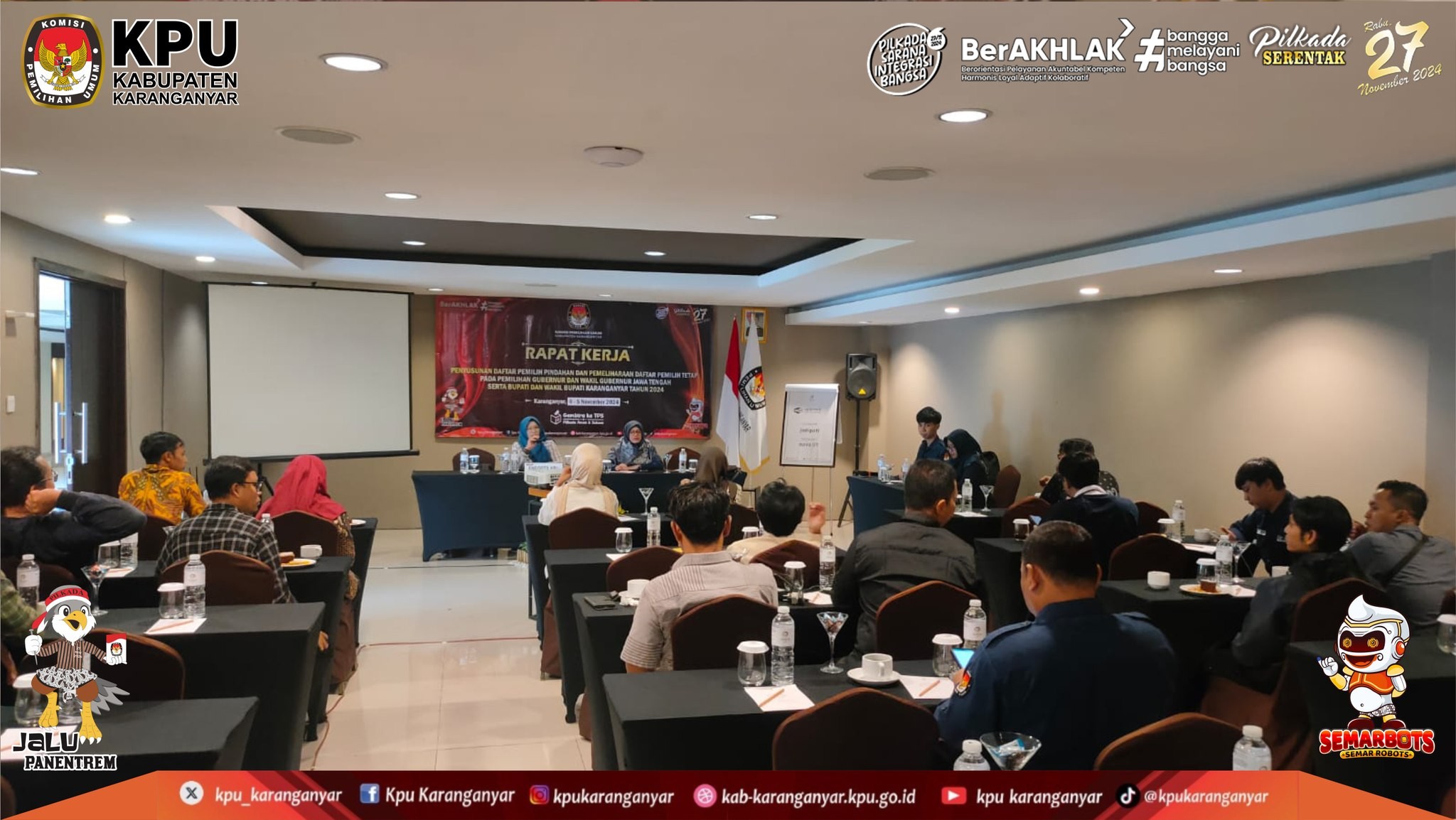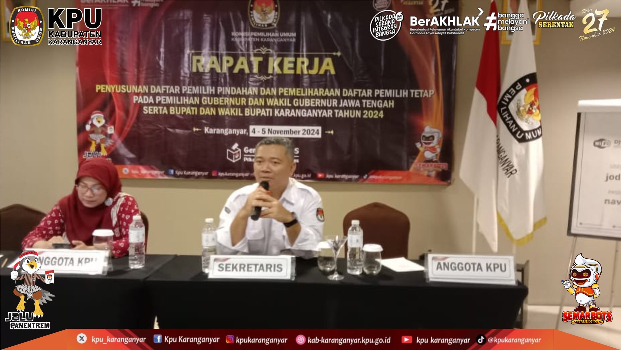 KPU Kabupaten Karanganyar Menggelar Rapat Kerja Penyusunan Daftar Pemilih Pindahan & Pemeliharaan DPT Pada Pilkada Serentak Tahun 2024 (Senin - Selasa, 4 - 5 November 2024)