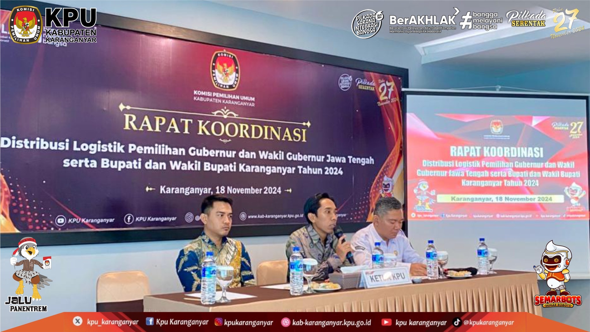 KPU Kabupaten Karanganyar Menggelar Rapat Koordinasi Distribusi Logistik Pemilihan Gubernur dan Wakil Gubernur Jawa Tengah serta Bupati dan Wakil Bupati Karanganyar Tahun 2024 (Senin, 18 November 2024)
