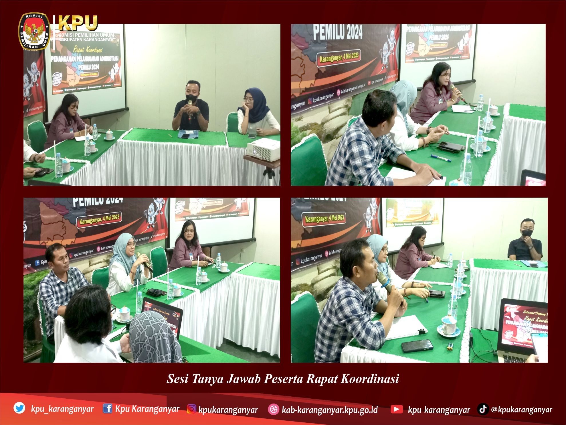KPU Karanganyar menggelar Rapat Koordinasi Penanganan Pelanggaran Administrasi Pemilu 2024 dengan PPK Divisi Hukum dan Pengawasan Se Kabupaten Karanganyar, Kamis (04/05/2023) di Green Resto Karanganyar.