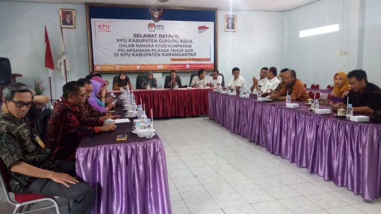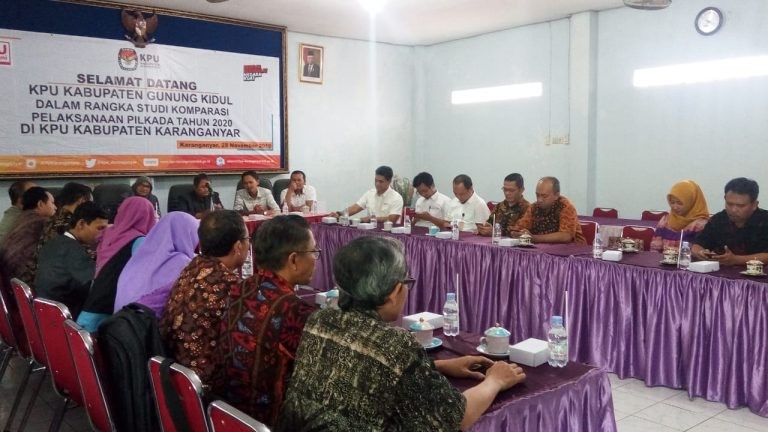 KPU Kabupaten Karanganyar sambut kunjungan KPU Kabupaten Gunung Kidul dalam rangka studi komparasi pelaksanaan Pilkada Tahun 2020. Acara tersebut dilaksanakan di kantor KPU Kabupaten Karanganyar tanggal 28 November 2019.