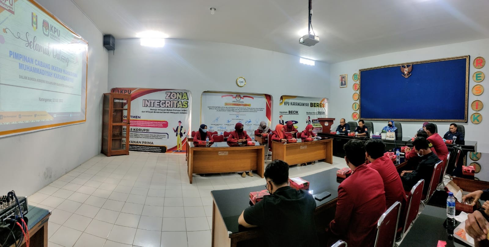 Kehadiran IMM Karanganyar diterima langsung oleh Ketua KPU Karanganyar, Triastuti Suryandari bersama komisioner dan sekretariat.