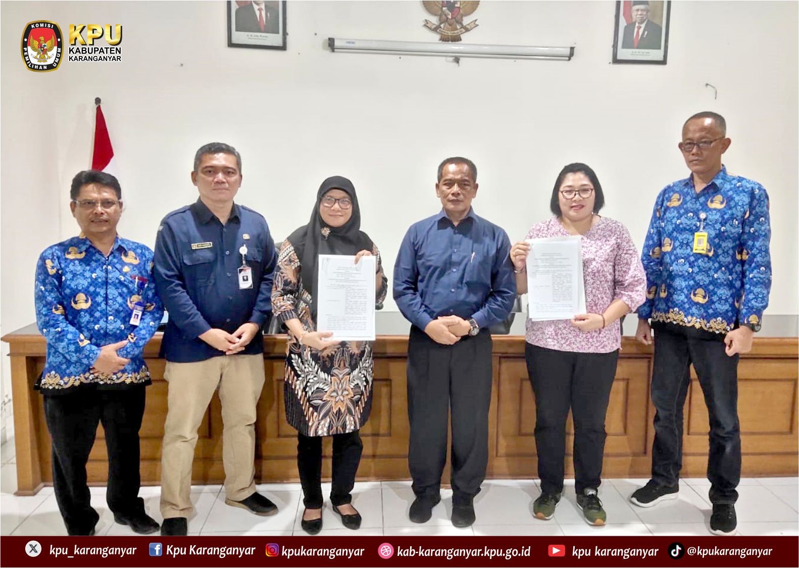 KARANGANYAR – KPU Karanganyar menerima Hibah Daerah untuk Pemilihan Kepala Daerah (Pilkada) Serentah Tahun 2024 dari Pemerintah Kabupaten Karanganyar. Naskah Perjanjian Hibah Daerah (NPHD) Pemilihan Bupati dan Wakil Bupati Karanganyar Tahun 2024 disampaikan Pemerintah Kabupaten Karanganyar melalui Kepala Badan Kesbangpol Kabupaten Karanganyar, Bambang Sutarmanto dan diterima langsung oleh Ketua KPU Karanganyar, Triastuti Suryandari, jum'at (10/11/2023).