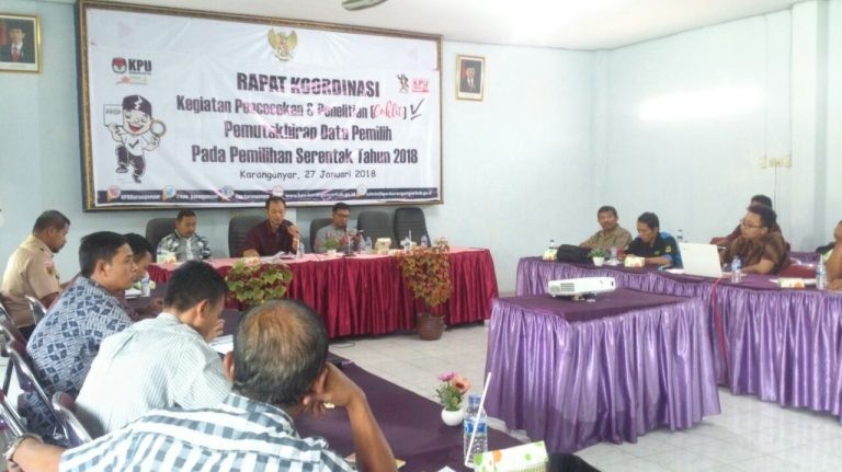 Tahapan Coklit dilakukan selama 30 hari dimulai pada tanggal 20 Januari 2018, yakni sejak 8 hari yang lalu, dan akan berakhir pada tanggal 18 Februari 2018 mendatang. Nur Fatkurohman, anggota KPU Karanganyar divisi Perencanaan dan Data menjelaskan bahwa Rapat Koordinasi ini bertujuan untuk menguatkan sinergi dengan PPK dalam memonitor PPDP dan menjadwalkan koordinasi dengan PPDP minimal sebanyak 3 (tiga) kali selama masa Coklit. KPU memonitor 5% dari jumlah PPDP, PPK berkoordinasi dengan PPS dan PPDP di wilayahnya, sehingga data yang diverifikasi oleh PPDP betul-betul menghasilkan data pemilih yang valid.