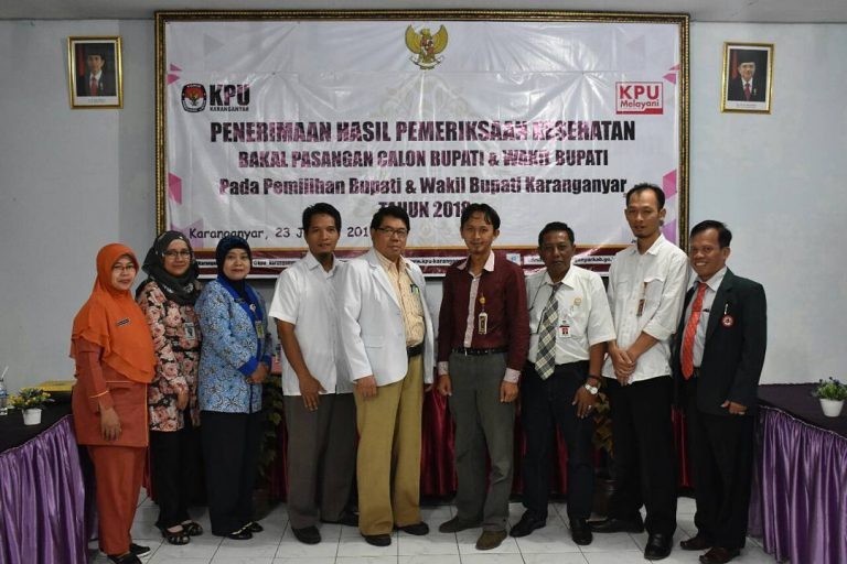 KARANGANYAR, kpu-karanganyarkab.go.id – KPU Karanganyar menerima hasil pemeriksaan kesehatan Bakal Pasangan Calon Bupati dan Wakil Bupati pada Pemilihan Bupati dan Wakil Bupati Karanganyar 2018 di Kantor KPU Karanganyar, Selasa (23/01/2018). Hasil pemeriksaan kesehatan diterima oleh Muhammad Maksum, Anggota KPU Karanganyar Divisi Teknis.