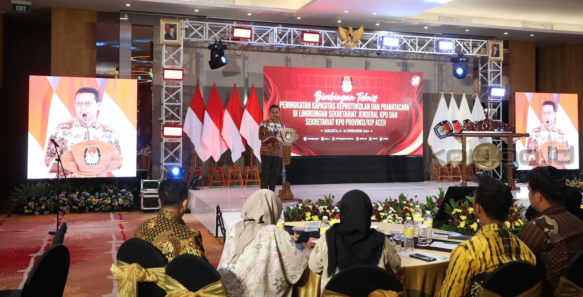 Hal ini disampaikan oleh Deputi Bidang Administrasi Suryadi saat membuka secara resmi kegiatan Bimbingan Teknis (Bimtek) Peningkatan Kapasitas Keprotokolan dan Pranatacara di Lingkungan Sekretariat Jenderal KPU dan Sekretariat KPU Provinsi/KIP Aceh, di Jakarta, Minggu (8/12/2024).
