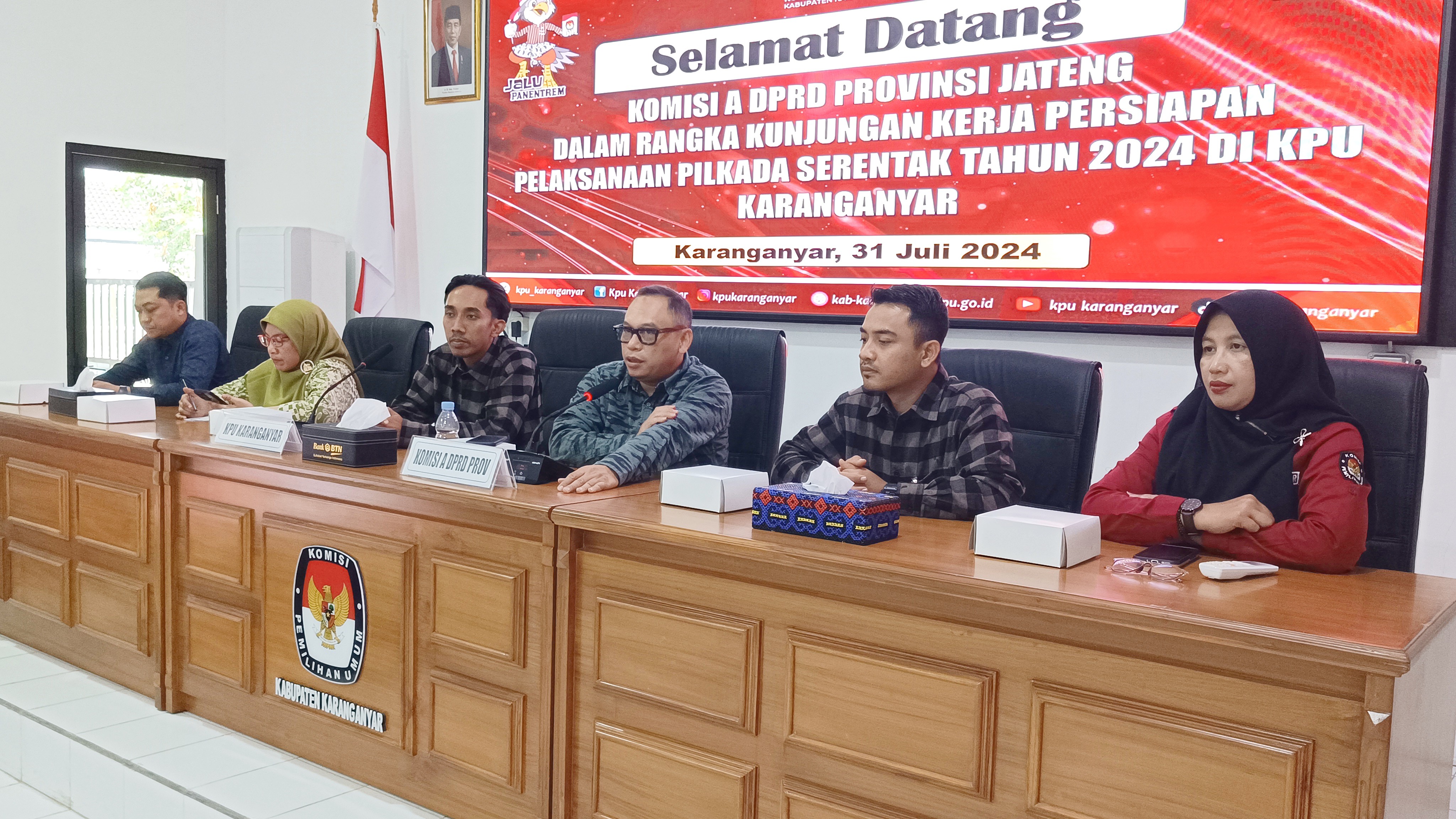 Menjelang pelaksanaan Pilkada serentak 2024, KPU Kabupaten Karanganyar menyambut baik kunjungan kerja dari anggota Komisi A DPRD Provinsi Jawa Tengah di kantor KPU pada Rabu, 31 Juli 2024.