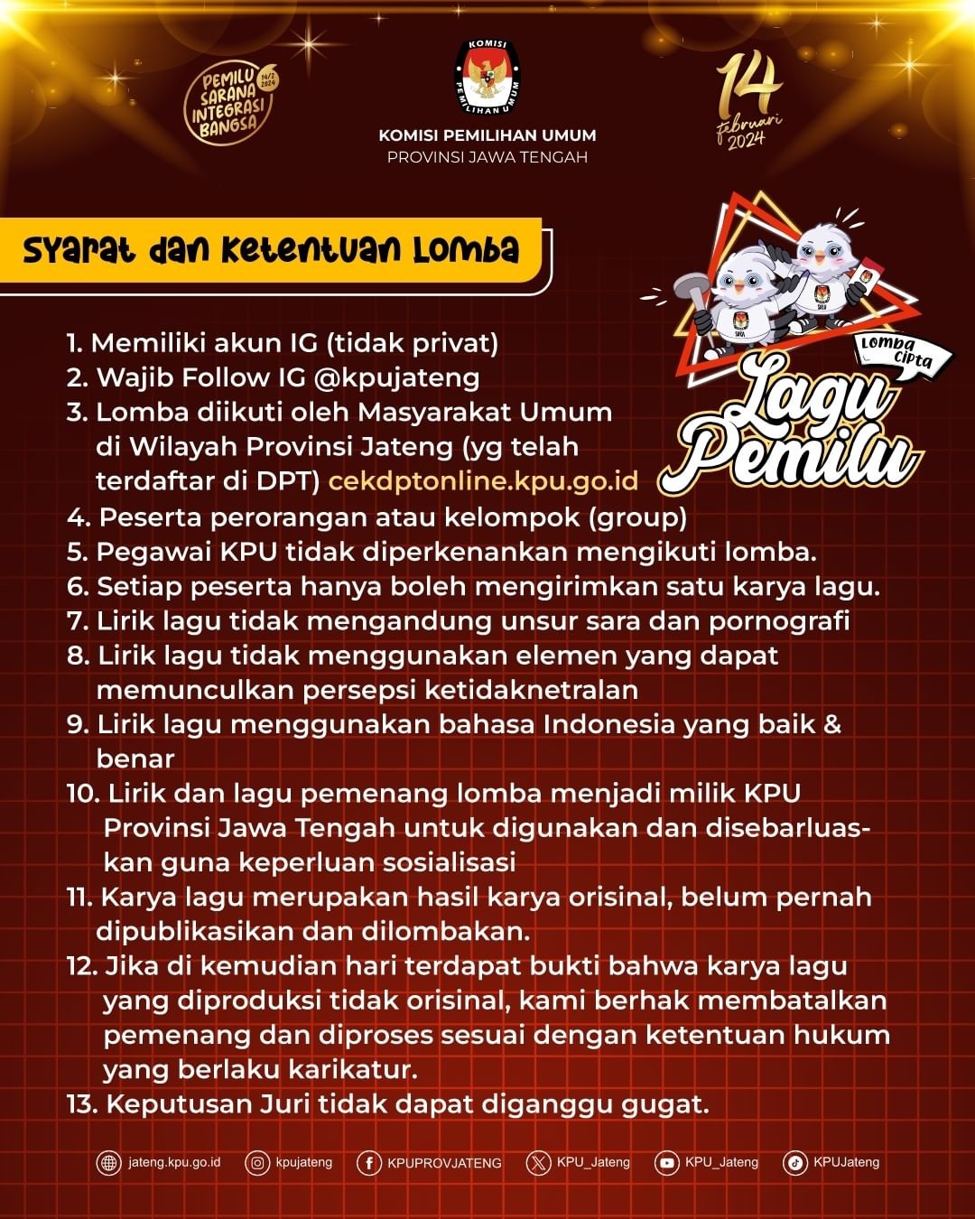 KPU Jateng mengadakan Lomba Cipta Lagu Pemilu dengan tema "Pemilu Sarana Integrasi Bangsa".