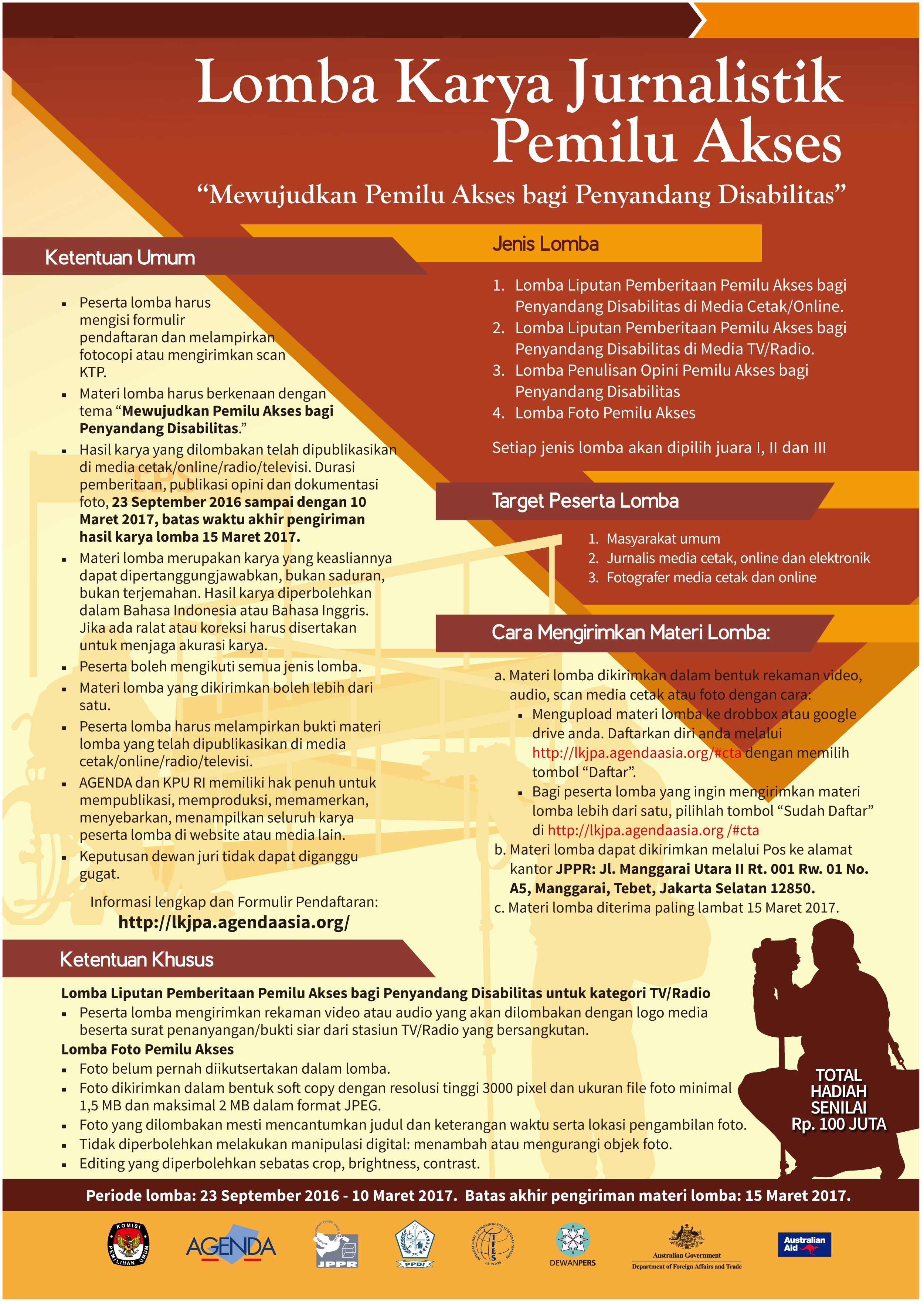LOMBA KARYA JURNALISTIK PEMILU AKSES Kamis, 26 Januari 2017 00:00 37 Lomba Karya jurnalistik DOWNLOAD Bagikan: Telah dilihat 37 kali