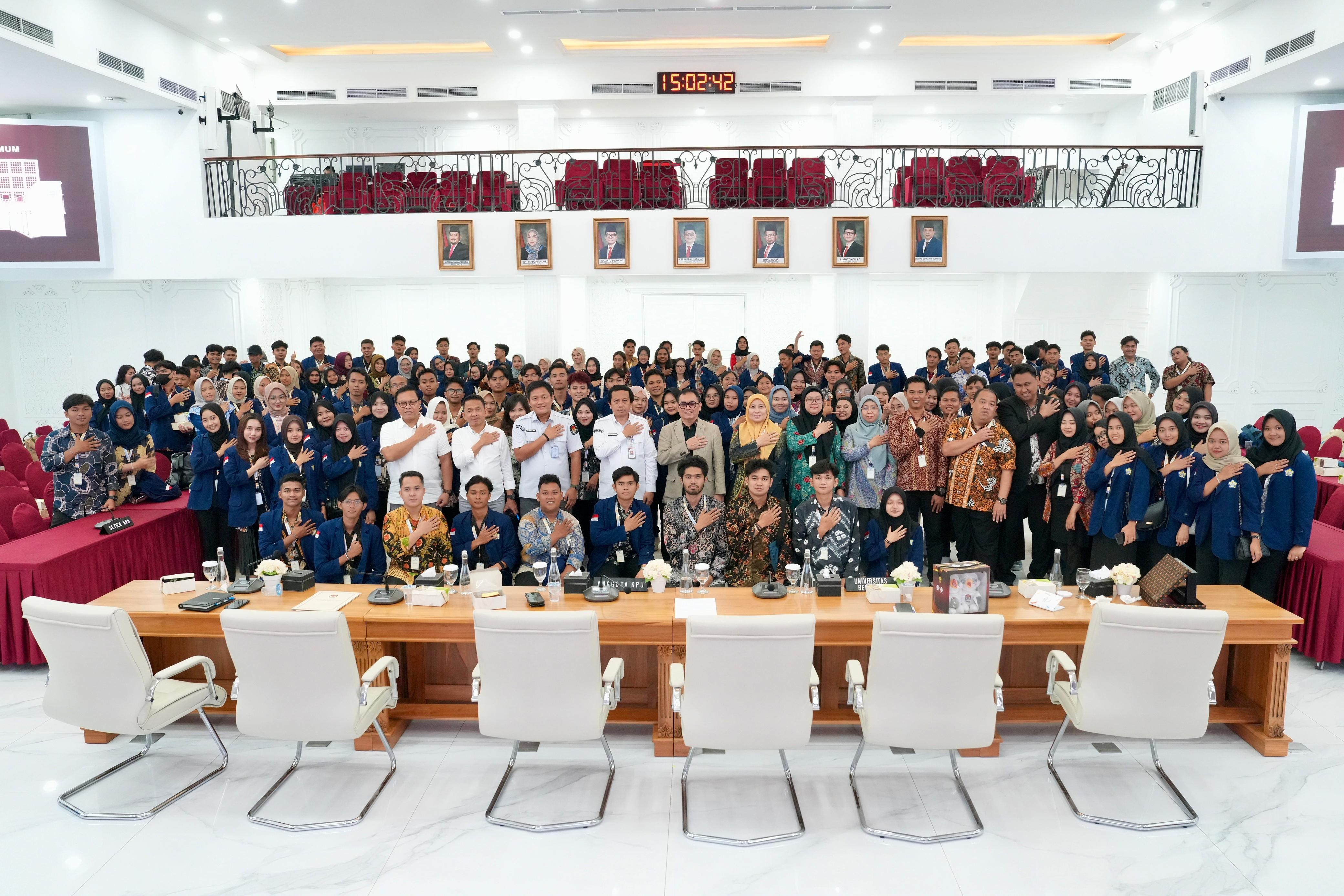 “Saya juga berharap, semua mahasiswa mahasiswi ke depan dapat menjadi agen perubahan dalam proses demokrasi di Indonesia,” tutur Parsa di depan Ketua Laboratorium FH Univiversitas Bengkulu Rahman Fitri, Ketua Unit Penjamin Mutu FH Univ. Bengkulu Asep Suherman beserta jajaran mahasiswa dan mahasiswi FH Universitas Bengkulu. (Humas KPU)