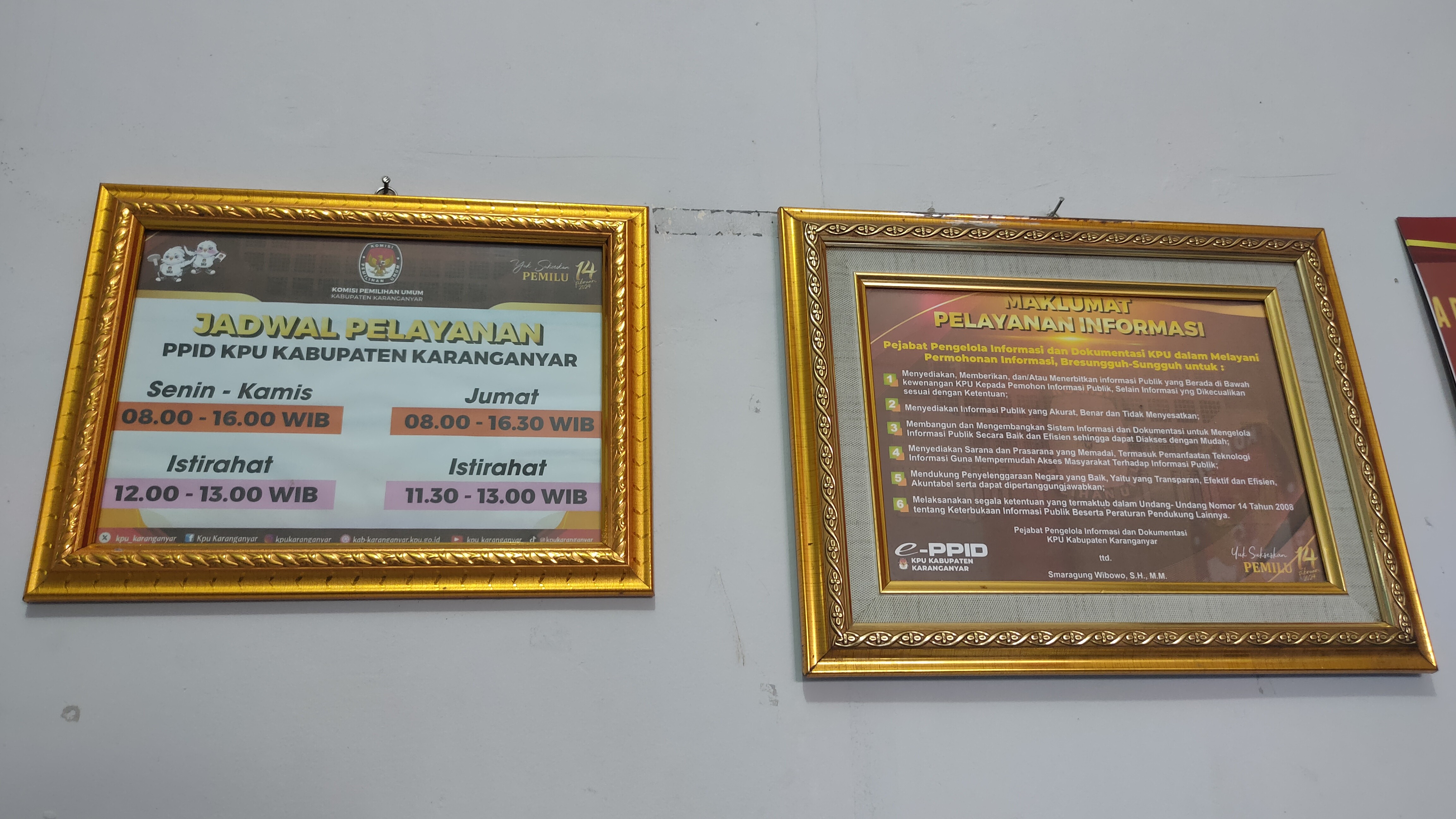 KPU Kabupaten Karanganyar Mengumumkan Maklumat Pelayanan Informasi Publik di Papan Pengumuman