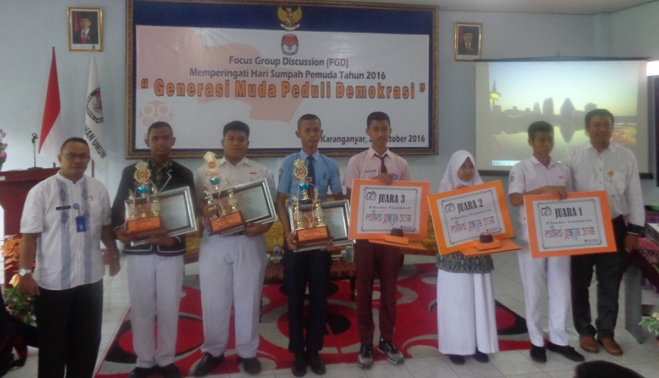 Selain menggelar diskusi, pada kesempatan tersebut KPU Kabupaten Karanganyar juga menyerahkan hadiah kepada pemenang photocontest dan penyelenggaraan Milkoi gaya 2016. (Inisial_1)