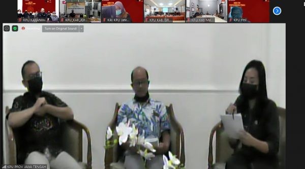 KARANGANYAR – JDIH, Kode Etik Penyelenggara Pemilu adalah suatu kesatuan asas moral, etika, dan filosofi yang menjadi pedoman perilaku bagi Penyelenggara Pemilu. Demikian dikatakan oleh Ketua KPU Provinsi Jawa Tengah Yulianto Sudrajat dalam sambutannya pada saat membuka acara Diskusi Rabu Ingin Tahu dengan tema Kode Etik Penyelenggara Pemilihan Umum yang diselenggarakan oleh KPU Provinsi Jawa Tengah melalui zoom meeting yang diikuti oleh Ketua dan Anggota KPU, Sekretaris dan Kasubbag Hukum dari 35 KPU Kabupaten/Kota se Jawa Tengah (Rabu, 19/5/21).