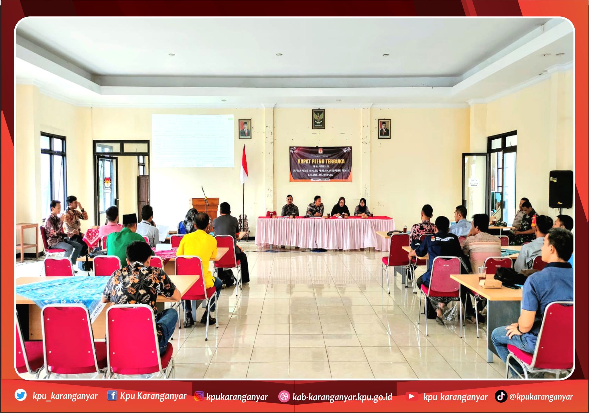 Monitoring Rapat Pleno DPSHP Akhir di 17 Kecamatan di Kabupaten Karanganyar (Minggu, 04 Juni 2023)