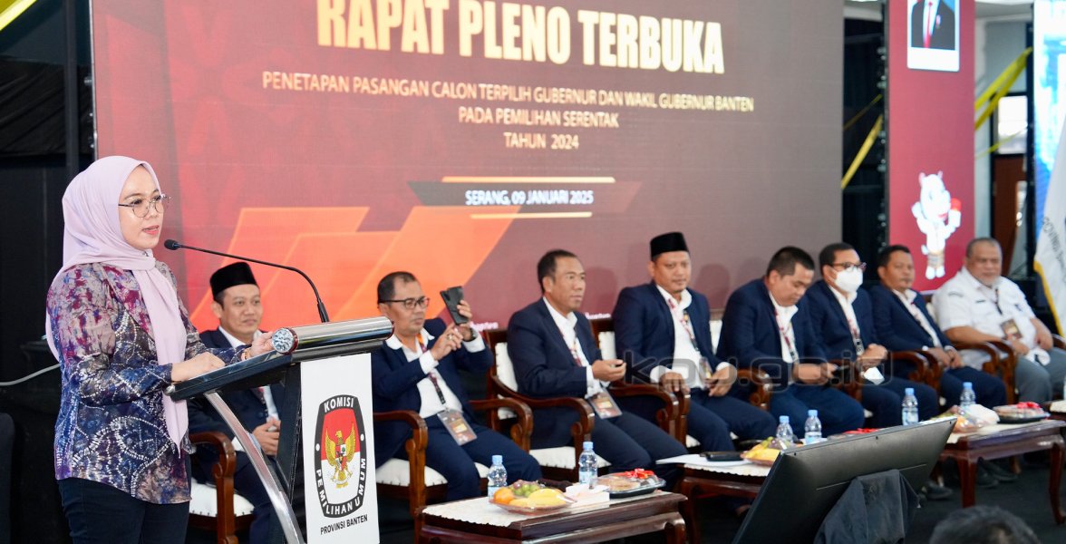 Hal tersebut disampaikan Anggota KPU Iffa Rosita saat hadir dan memberi sambutan pada kegiatan Rapat Pleno Terbuka Penetapan Pasangan Calon Terpilih Gubernur dan Wakil Gubernur Banten pada Pemilihan Serentak Tahun 2024, di Serang, Kamis (9/1/2025). “Banten ini menjadi juara, karena di antara 37 provinsi yang melaksanakan pesta demokrasi, Banten ada di 21 provinsi yang tidak ada sengketa di MK,” kata Iffa