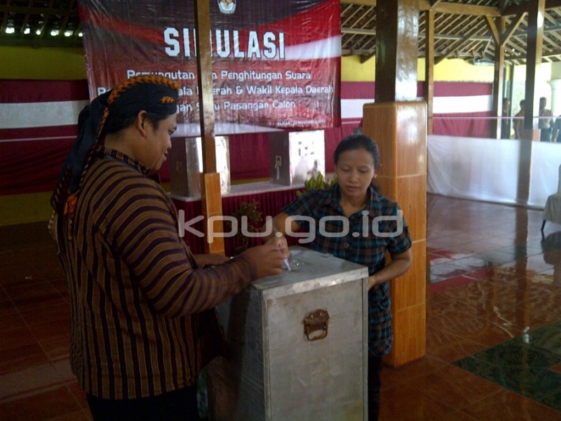 Hal tersebut disampaikan oleh Komisioner KPU RI, Hadar Nafiz Gumay saat membuka acara simulasi pemungutan dan penghitungan suara dengan satu pasangan calon, di Tempat Pemungutan Suara (TPS) 3, Desa Pager Wejo, Kecamatan Kesamben, Kabupaten Blitar. Minggu (22/11) turut hadir pada acara tesebut Komisioner KPU RI, Arief Budiman dan Ferry Kurnia Rizkiyansyah, Kapolsek Blitar, dan camat kesamben.