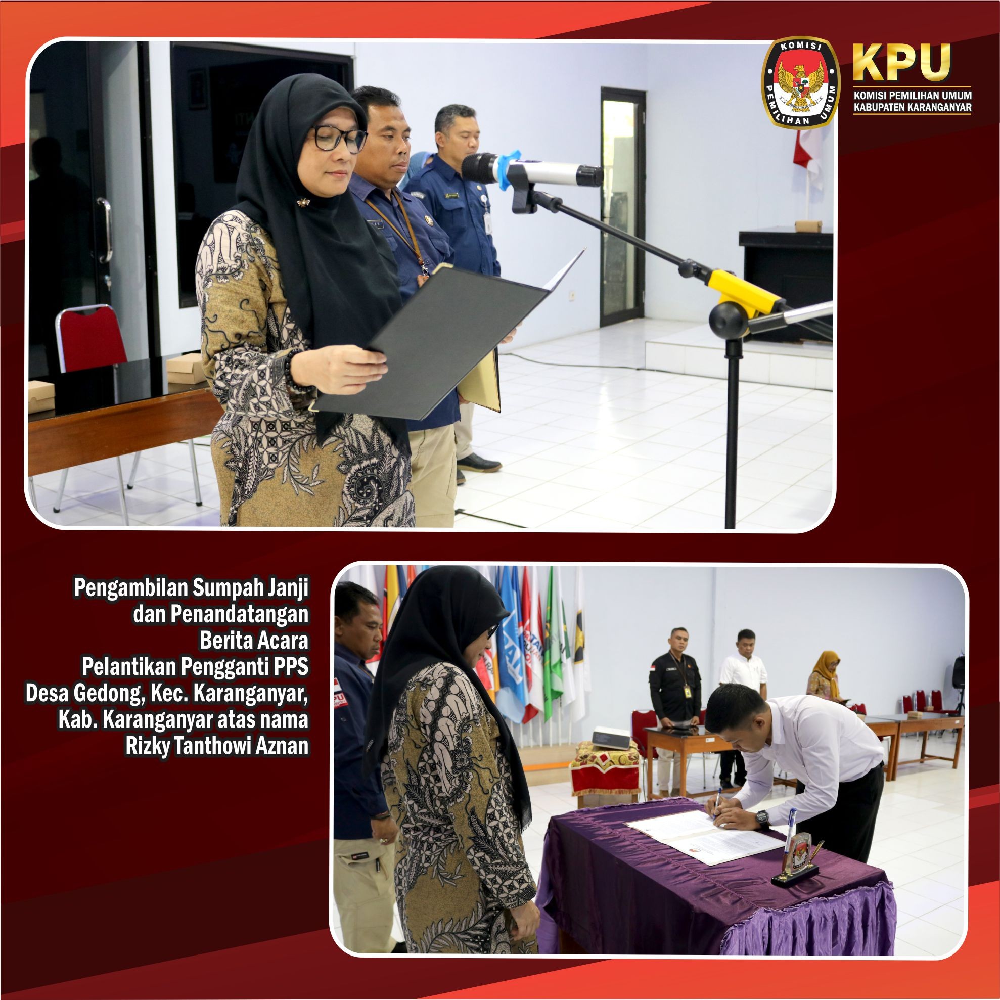 Pelantikan dan Pengambilan Sumpah Janji Pengganti Panitia Pemungutan Suara (PPS) pada Desa Gedong, Kecamatan Karanganyar