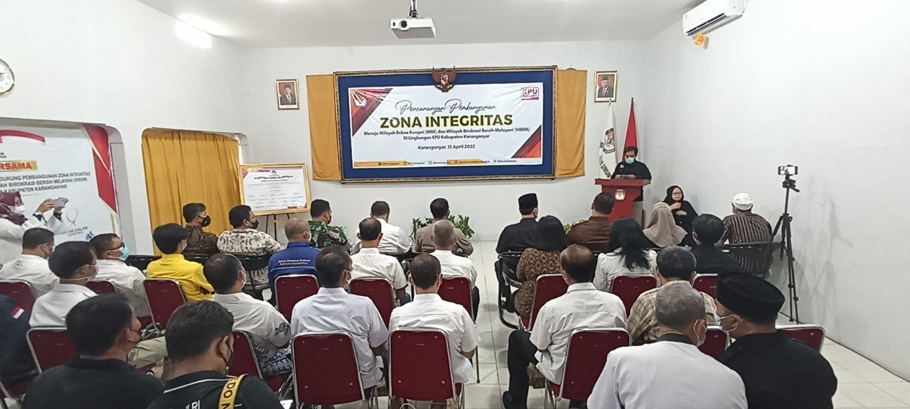 Ketua KPU Karanganyar, Triastuti Suryandari, menyampaikan bahwa kegiatan hari ini, merupakan langkah KPU Karanganyar sebagai Pilot Project dalam implementasi pembangunan zona integritas di lingkungan KPU Provinsi Jawa Tengah. Hal tersebut, lanjut Trias, menjadi sebuah kehormatan sekaligus tantangan bagi KPU Karanganyar untuk mewujudkan WBK dan WBBM di lingkungan KPU Karanganyar.