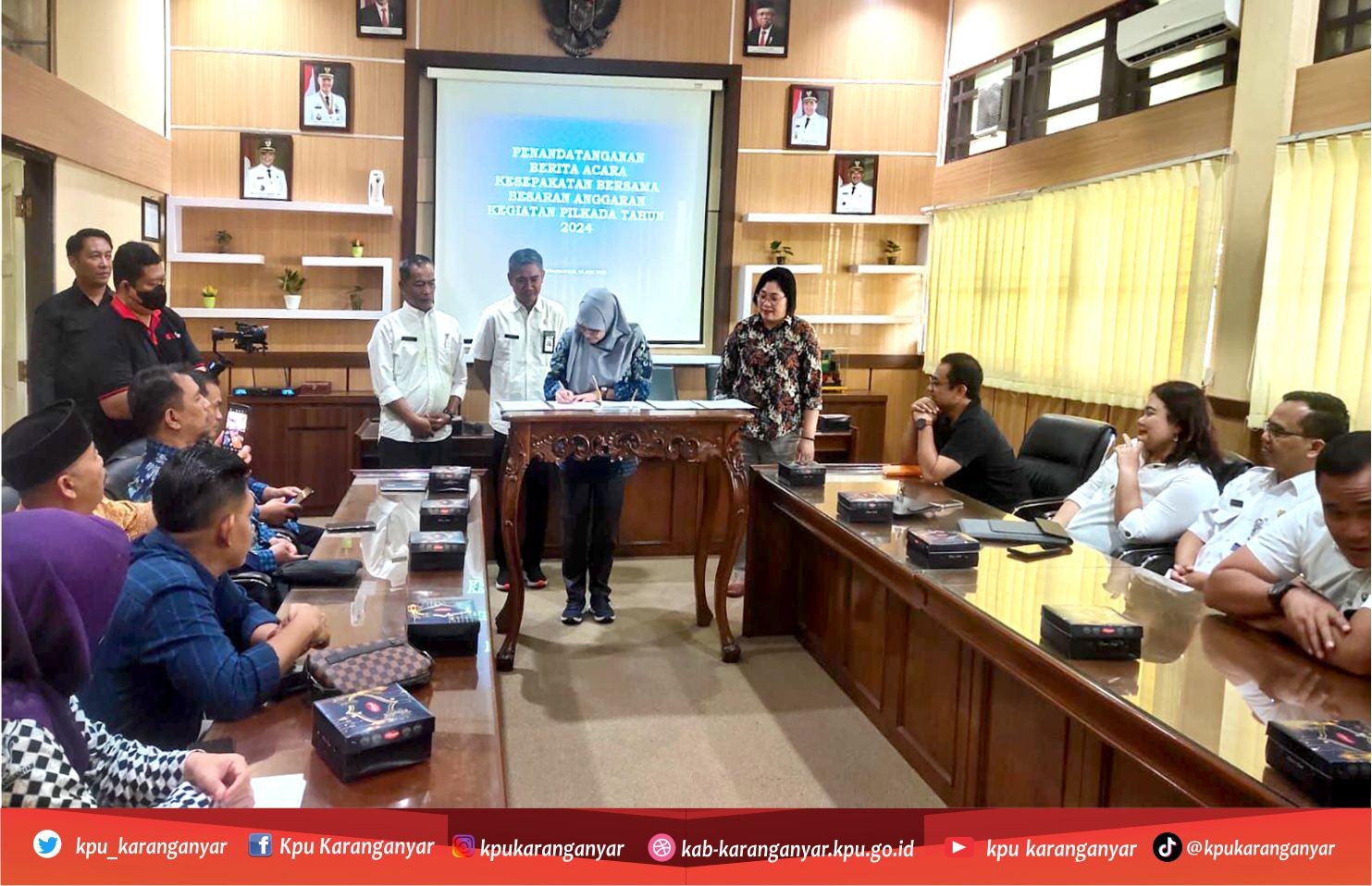 Pemerintah Daerah Kabupaten Karanganyar dengan KPU Karanganyar dan Bawaslu Karanganyar telah menyepakati anggaran untuk kegiatan tahapan Pilkada 2024. Kesepakatan tersebut dituangkan dalam Berita Acara yang ditandatangani oleh Sekda Karanganyar, Timotius Suryadi, Ketua KPU Karanganyar, Triastuti Suryandari dan Ketua Bawaslu Karanganyar, Nuning Ritawanita Priliastuti di Ruang Garuda Setda Karanganyar, Jumat (16/6/2023).
