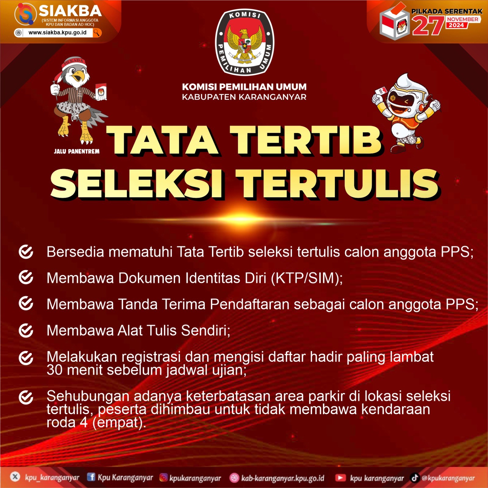 Info lebih lanjut dapat datang langsung ke Kantor KPU Kabupaten Karanganyar ( Jl. Tentara Pelajar Tegalasri, Bejen, Karanganyar)