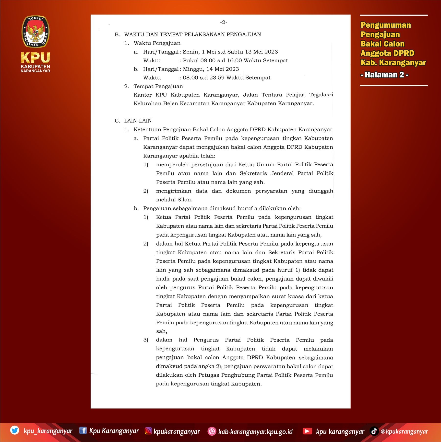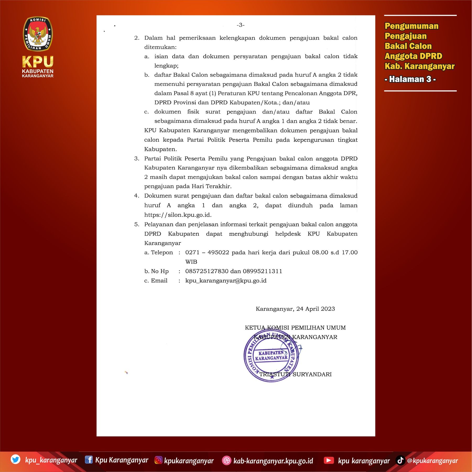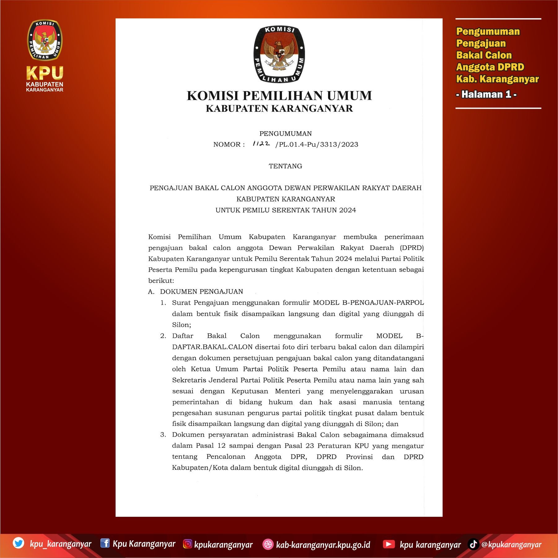 Pengumuman Pengajuan Bakal Calon Anggota DPRD Kab. Karanganyar (PDF)