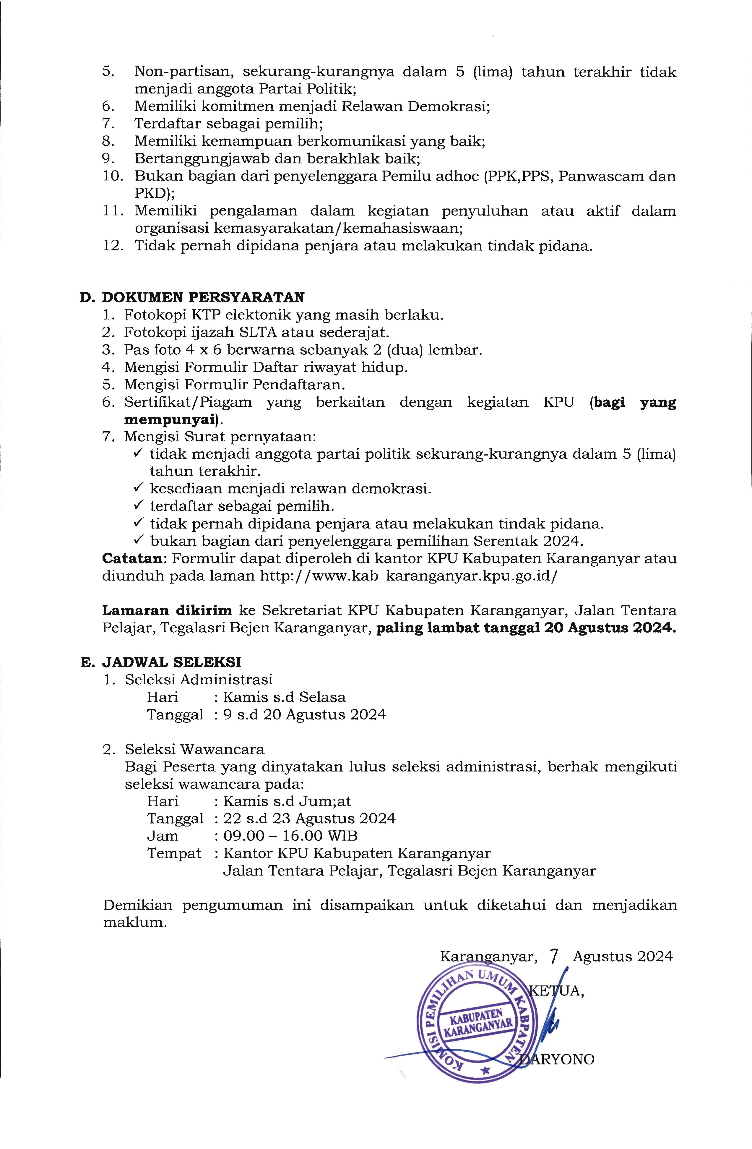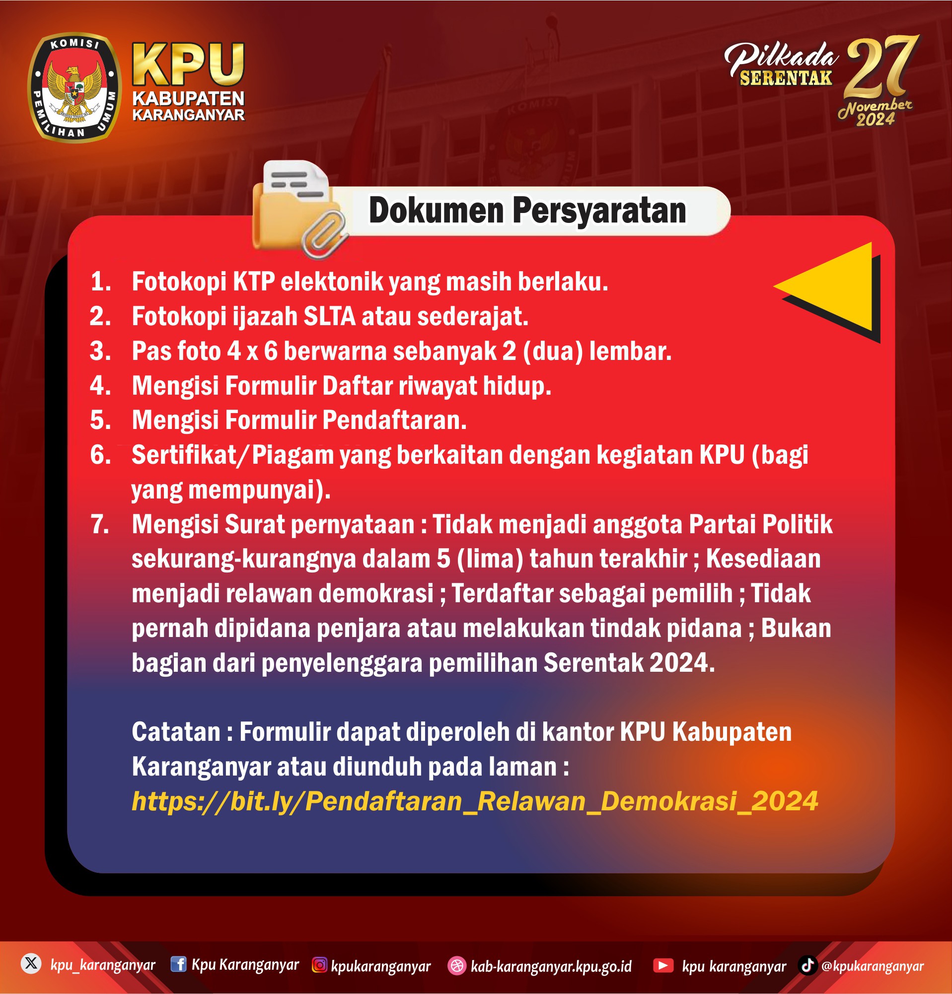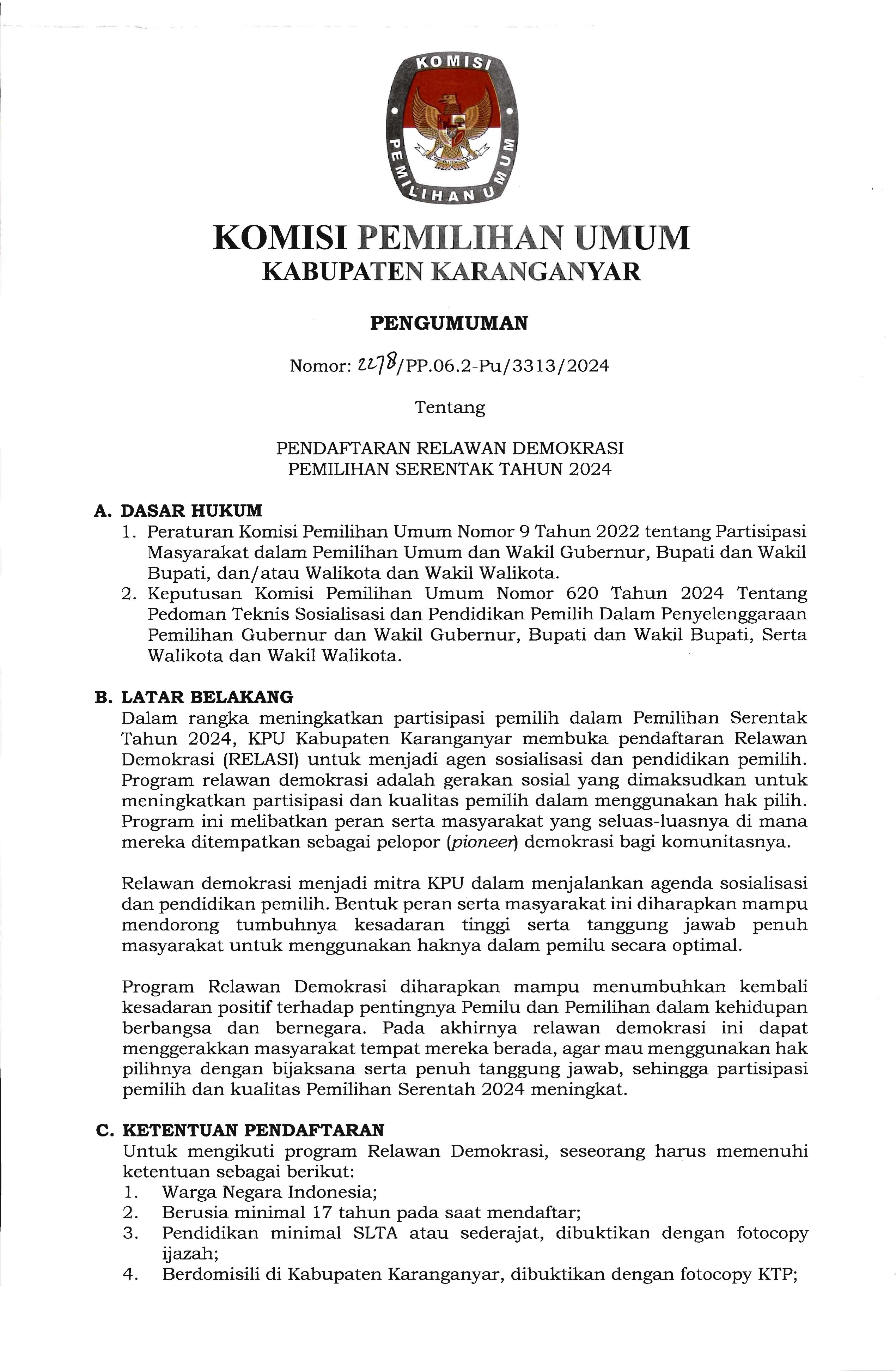 PENGUMUMAN PENDAFTARAN RELAWAN DEMOKRASI PEMILIHAN SERENTAK TAHUN 2024
