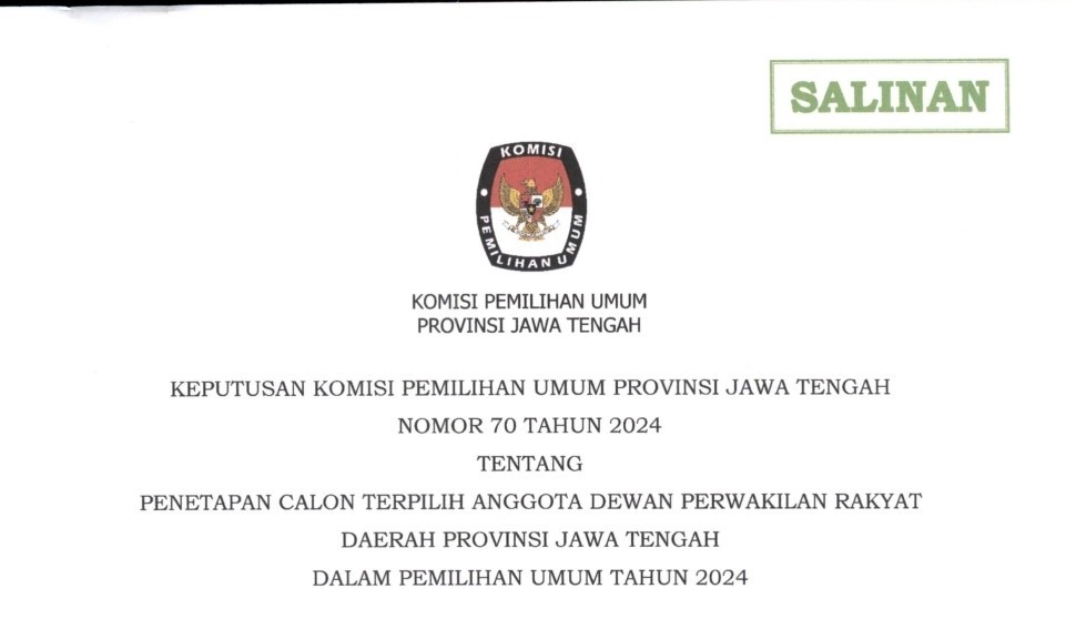Pengumuman Penetapan Kursi Parpol Peserta Pemilu Anggota DPRD Jateng Tahun 2024 dapat diakses disini