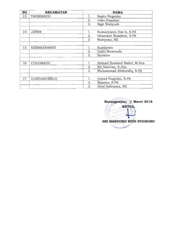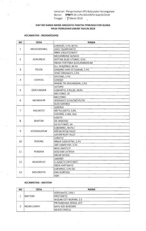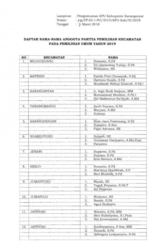 Pengumuman Penetapan Nama Anggota PPK dan PPS Pemilihan Umum Tahun 2019 Rabu, 07 Maret 2018 00:00 39 DOWNLOAD Bagikan: Telah dilihat 39 kali