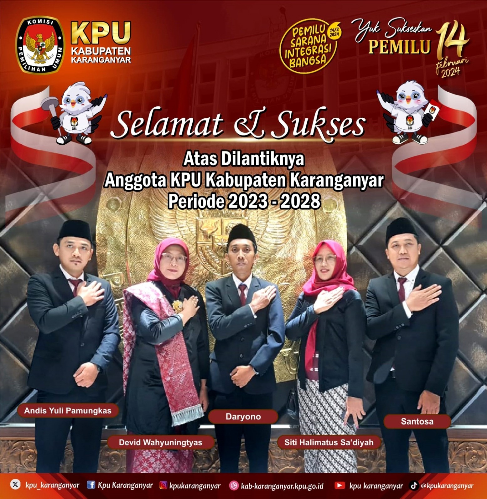 Selamat dan sukses atas dilantiknya Anggota KPU Kabupaten Karanganyar Periode 2023-2028