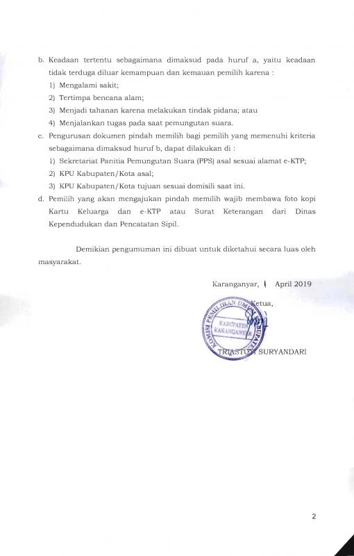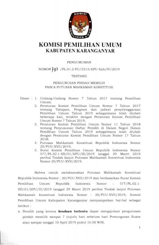 PENGUMUMAN PINDAH PEMILIH PASCA PUTUSAN MK