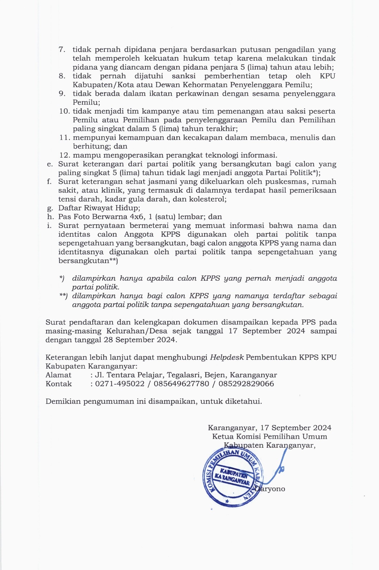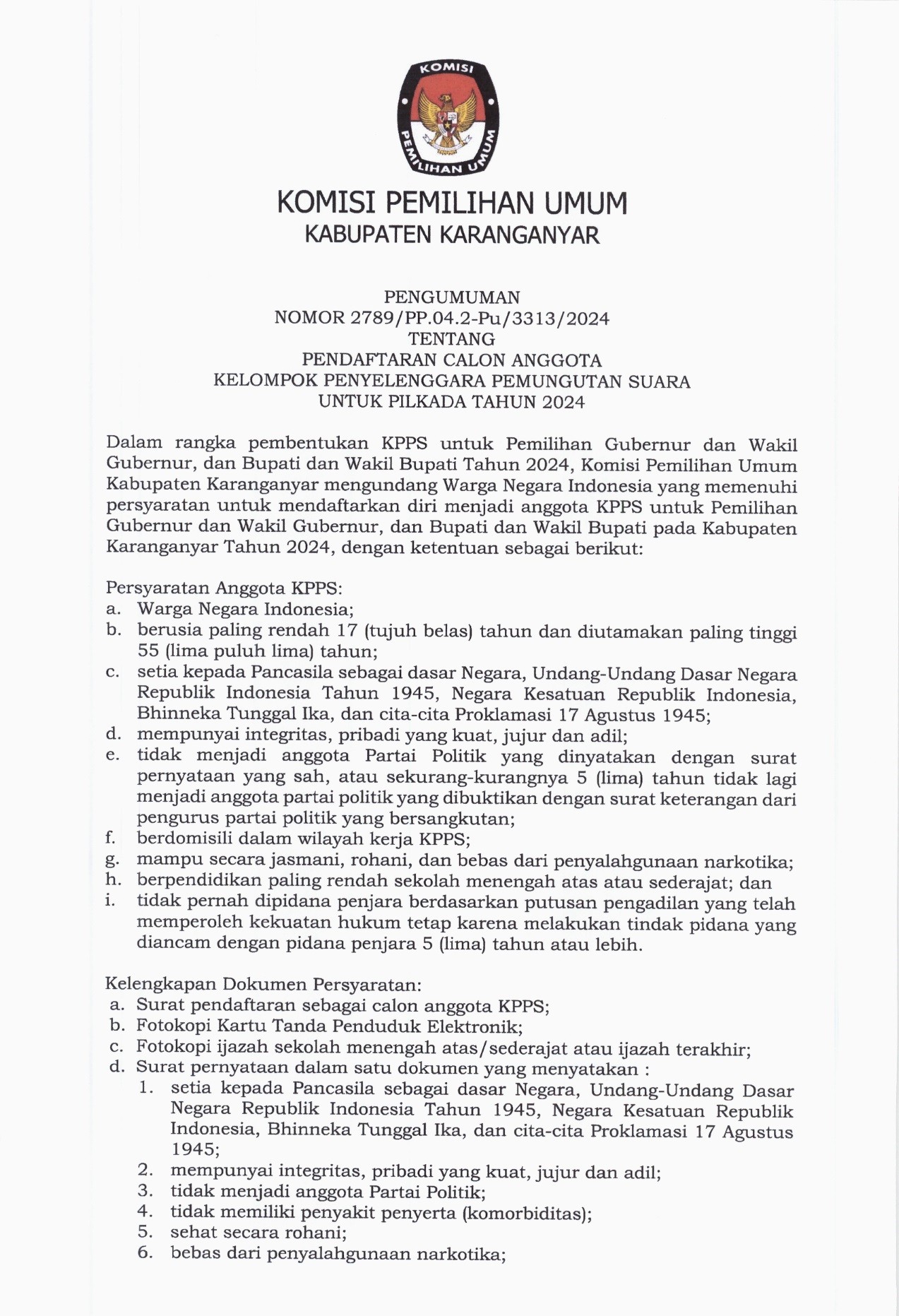 Pengumuman Tentang Pendaftaran Calon Anggota KPPS untuk Pilkada Tahun 2024