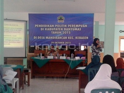 Di Kabupaten Banyumas, jumlah anggota DPRD perempuan periode 2014-2019 hanya sembilan orang atau 18%. Dengan pendidikan politik bagi perempuan ini, diharapkan dapat meningkatkan kesadaran politik perempuan dan peningkatan jumlah perempuan yang menjadi wakil rakyat. (sari/ikhda/red. )