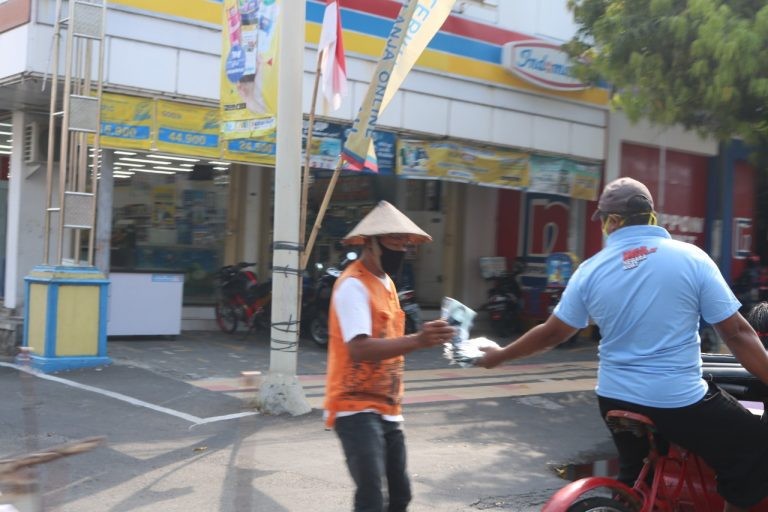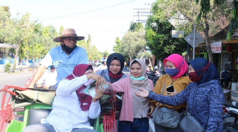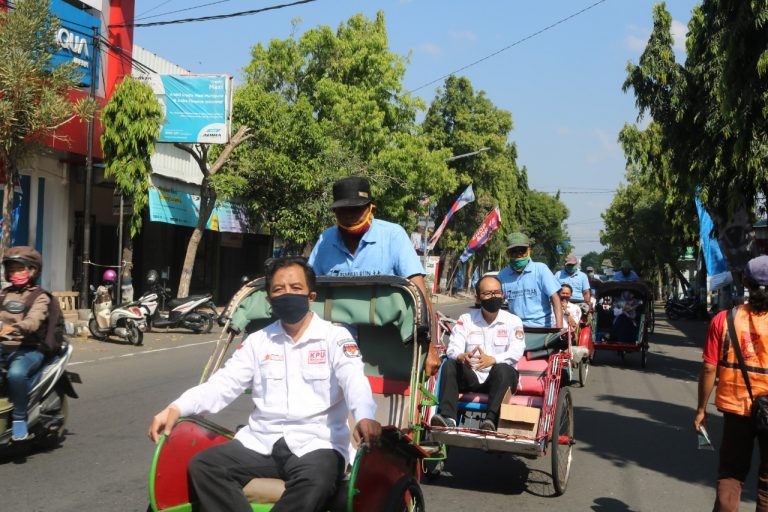 Disepanjang jalan yang dilalui pawai becak dilakukan sosialisasi alamat baru Kantor KPU Karanganyar sekaligus aksi simpatik pembagian masker dan sosialisasi pentingnya disiplin dalam penerapan protokol kesehatan.