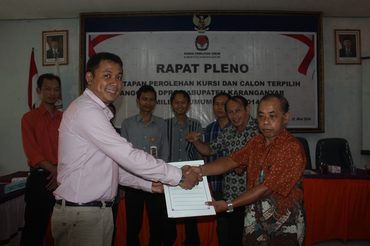 Pleno Penetapan Perolehan Kursi dan Calon Terpilih Anggota DPRD Kab. Karanganyar Pemilu Tahun 2014