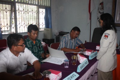 Penyerahan Berita Acara Penetapan Perolehan Kursi dan Calon Terpilih Anggota DPRD Kab. Karanganyar Pemilu Tahun 2014 oleh (Kiri) Ketua KPU Karanganyar kepada Ketua Panwaslu Karanganyar