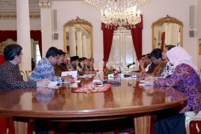 Jakarta, kpu.go.id Paska menggelar pertemuan dengan Komisi Pemilihan Umum (KPU) RI, Badan Pengawas Pemilu (Bawaslu), dan Dewan Kehormatan Penyelenggara Pemilu (DKPP), Presiden Republik Indonesia, Joko Widodo merasa optimis terkait perkembangan penyelenggaraan tahapan Pemilihan Kepala Daerah (Pilkada) serentak 2015, Selasa (3/11).