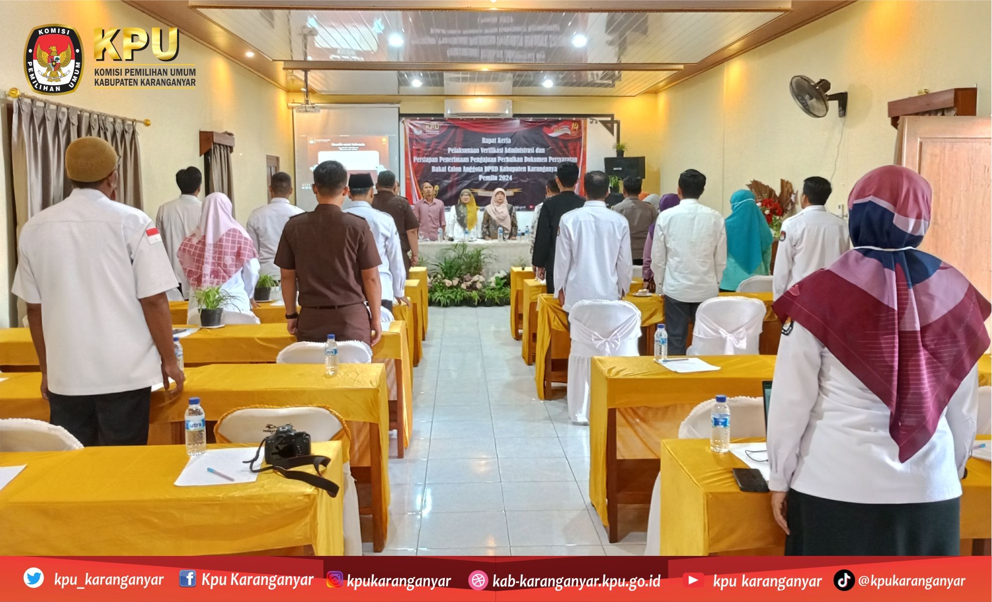 Rapat Kerja Pelaksanaan Verifikasi Administrasi dan Persiapan Penerimaan Pengajuan Perbaikan Dokumen Persyaratan Bakal Calon Anggota DPRD Karanganyar Pemilu 2024
