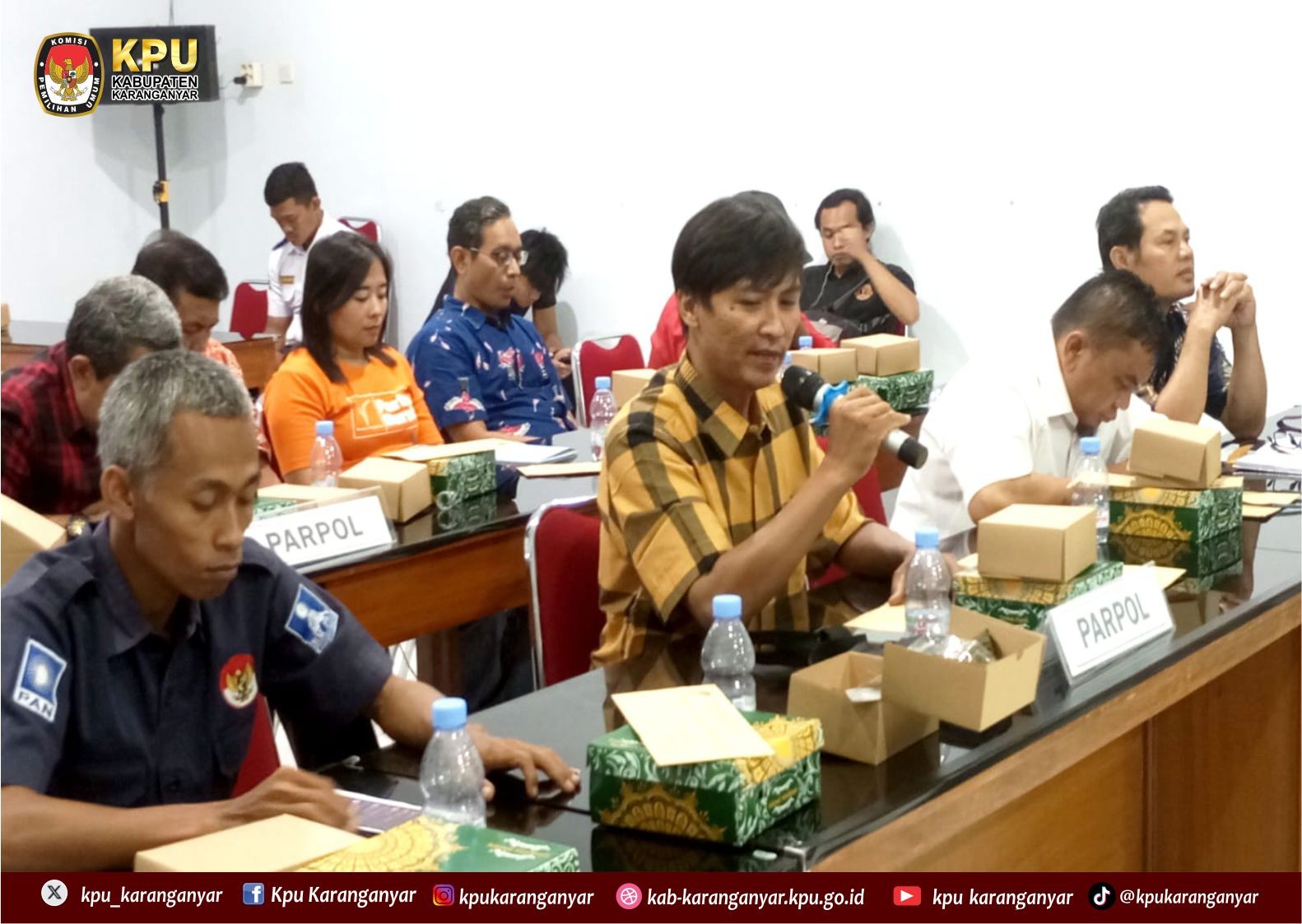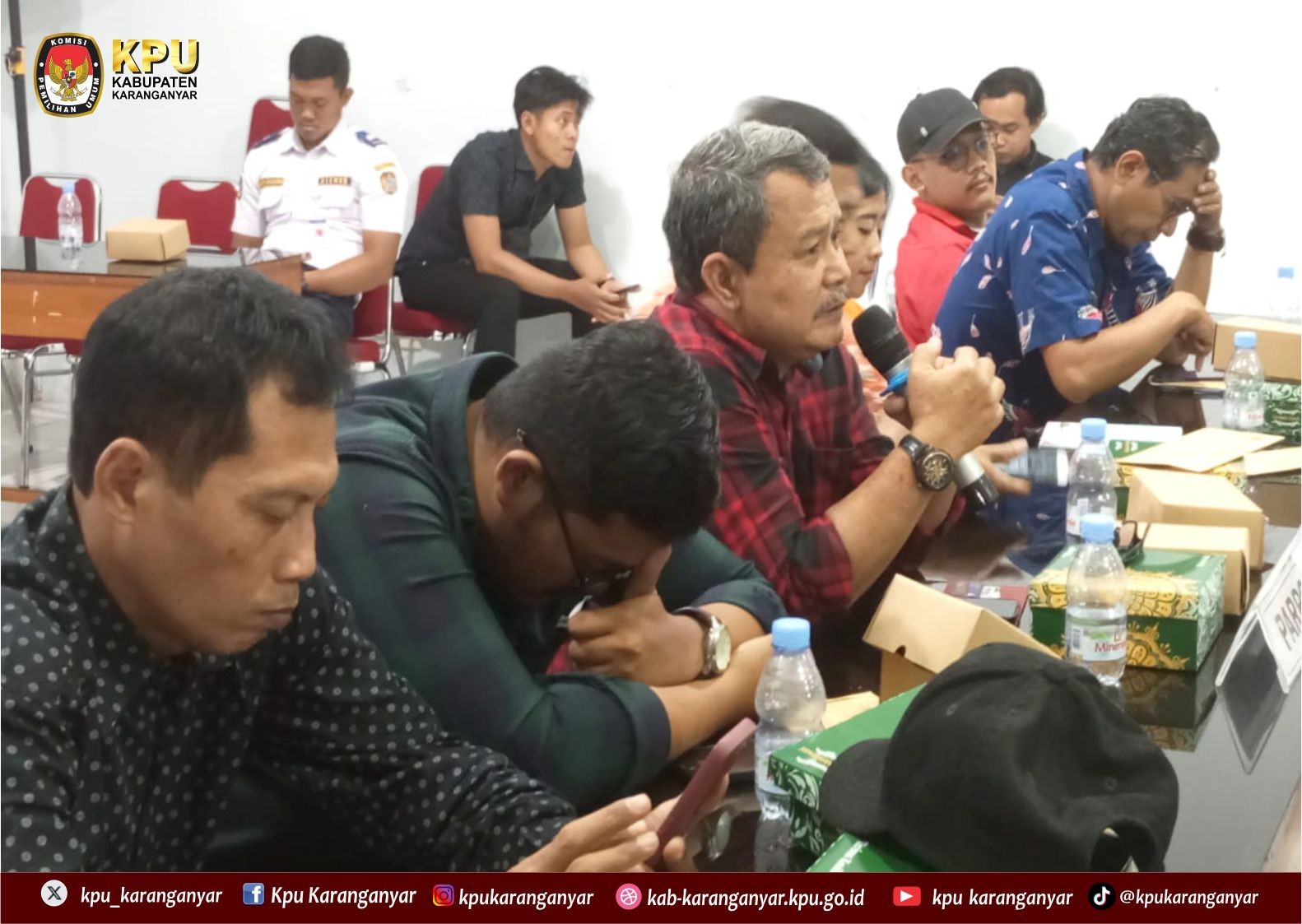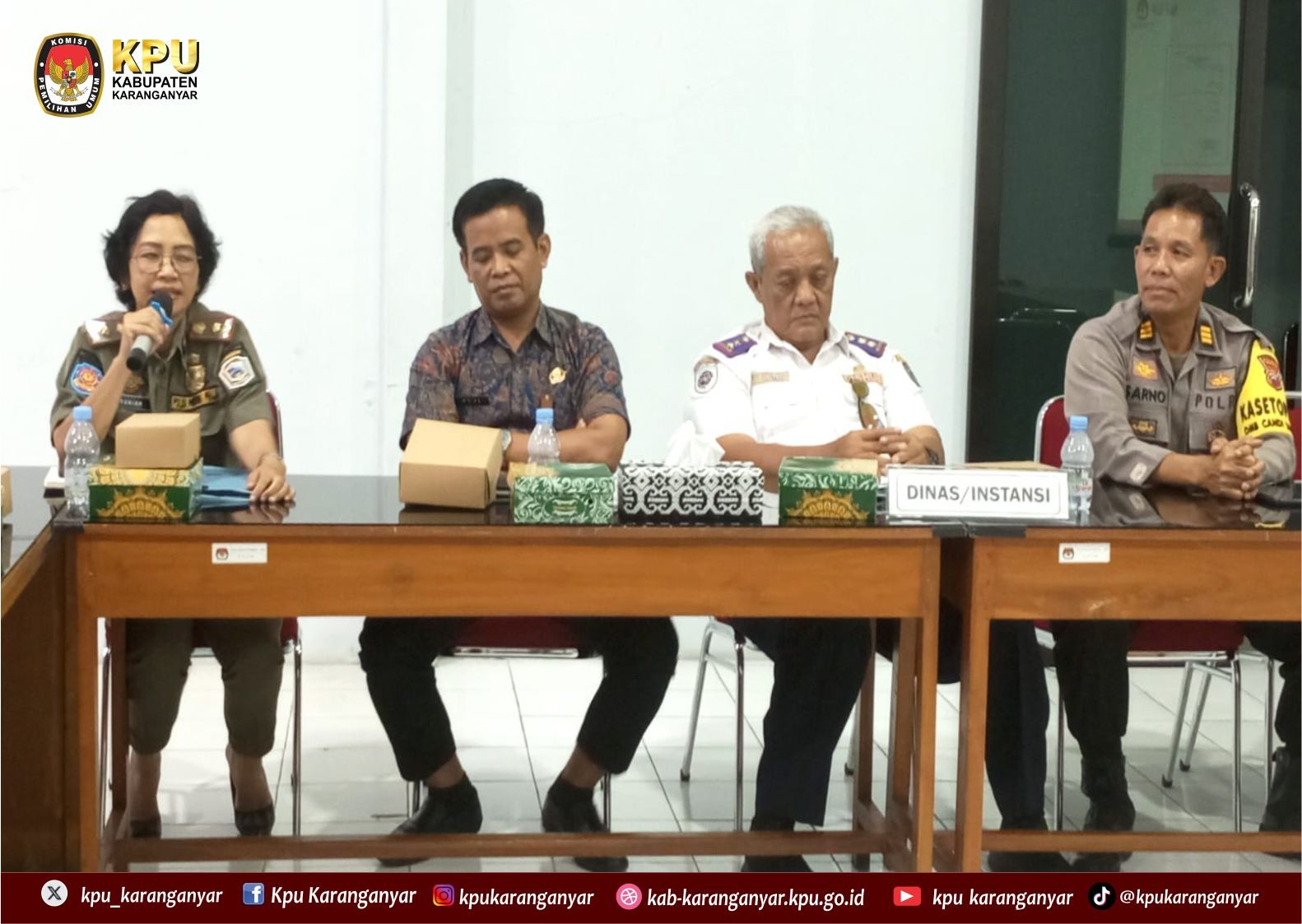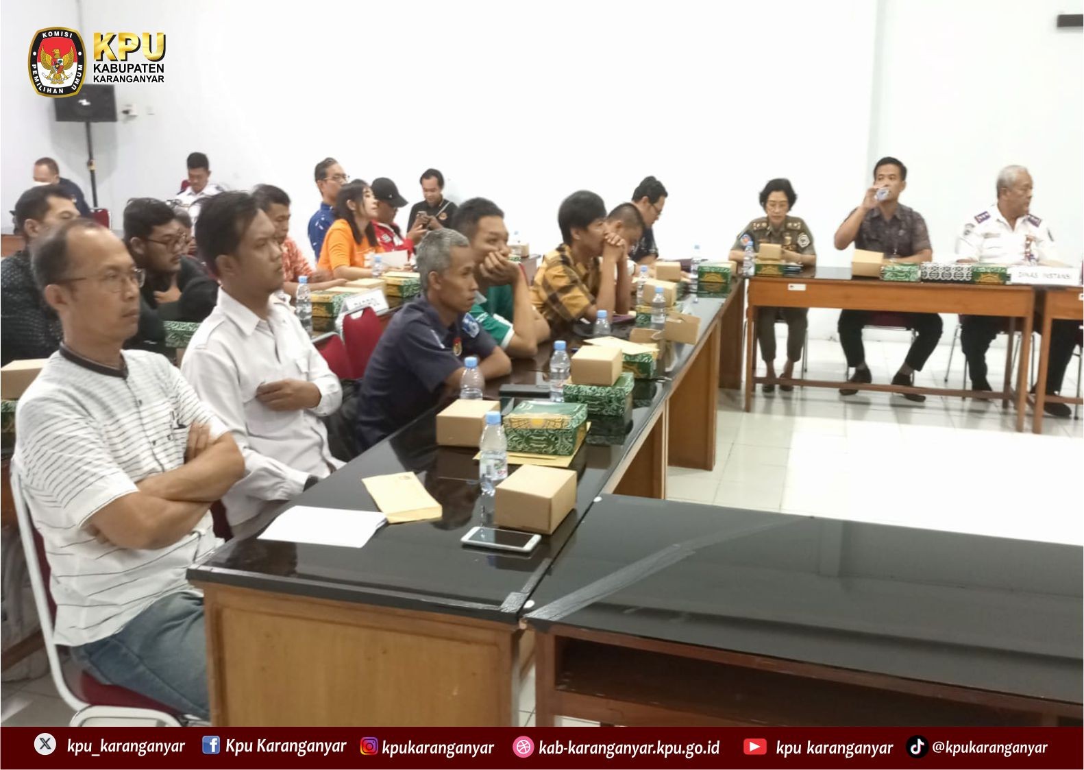 KPU Kabupaten Karanganyar Menyelenggarakan Rapat Koordinasi Persiapan Kampanye dan Dana Kampanye untuk Pemilu Serentak Tahun 2024 bersama Parpol, Kesbangpol, dan Dinas Instansi terkait (Selasa, 14 November 2023).