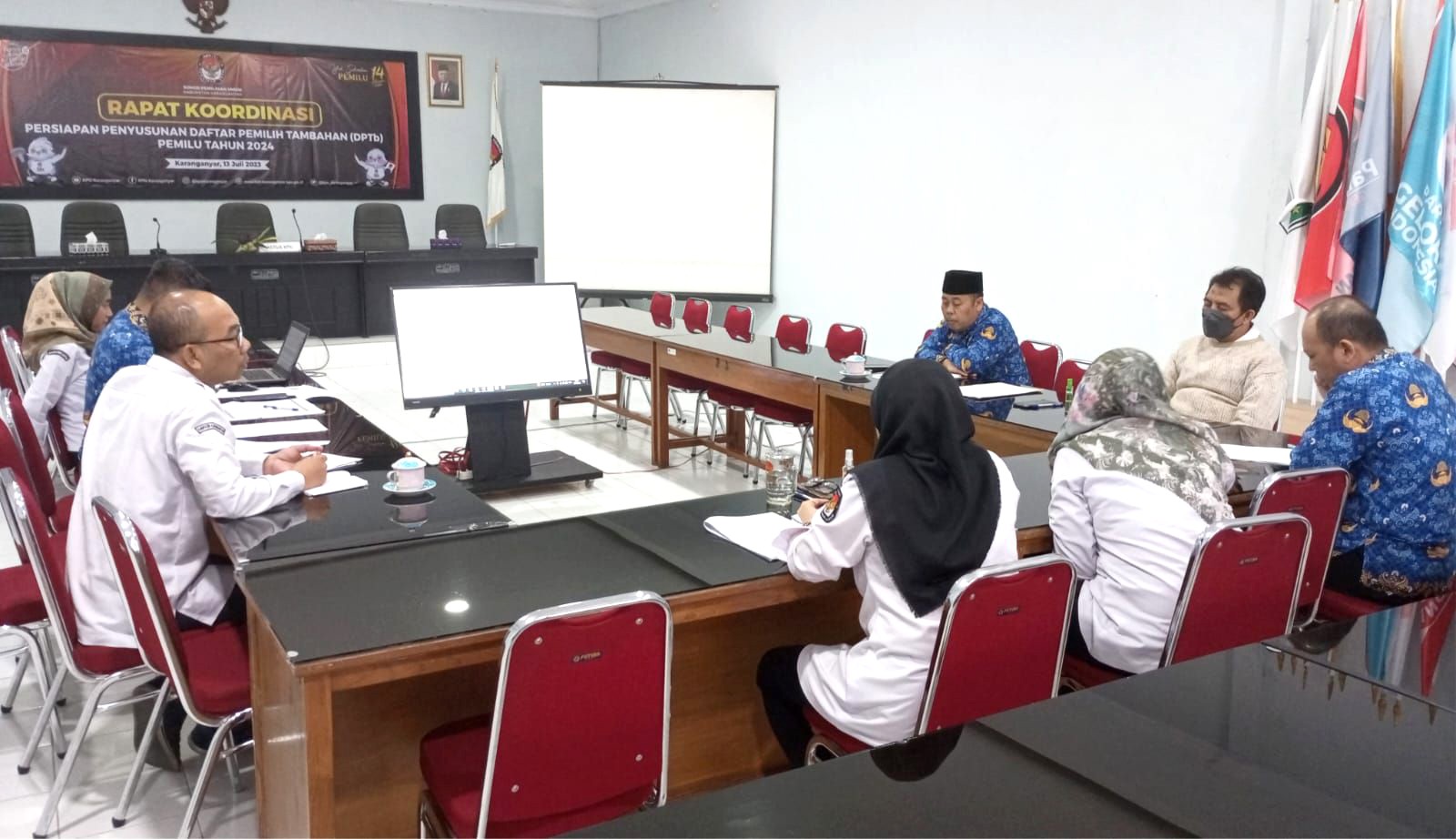 KPU Kabupaten Karanganyar menyelenggarakan Rapat Koordinasi Pertanggungjawaban Penggunaan Anggaran Bulan Juni 2023 di Aula Kantor KPU pada Senin (17/07/2023)