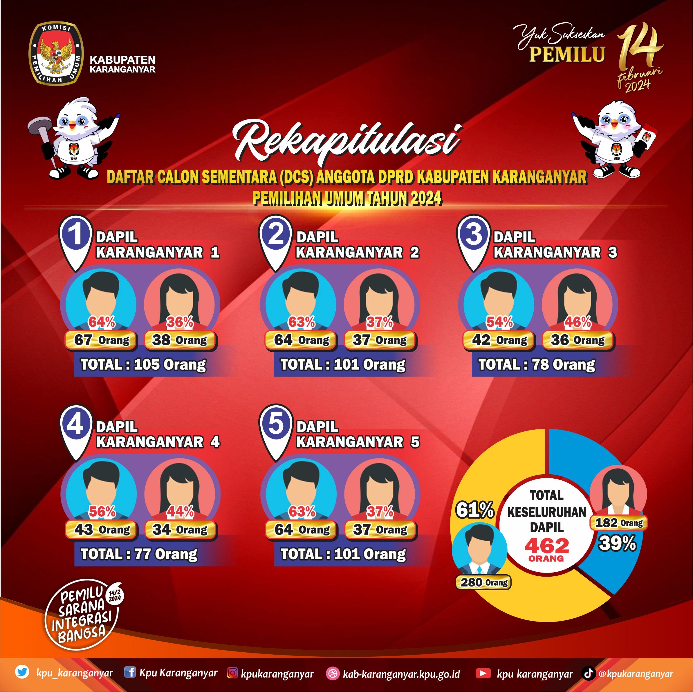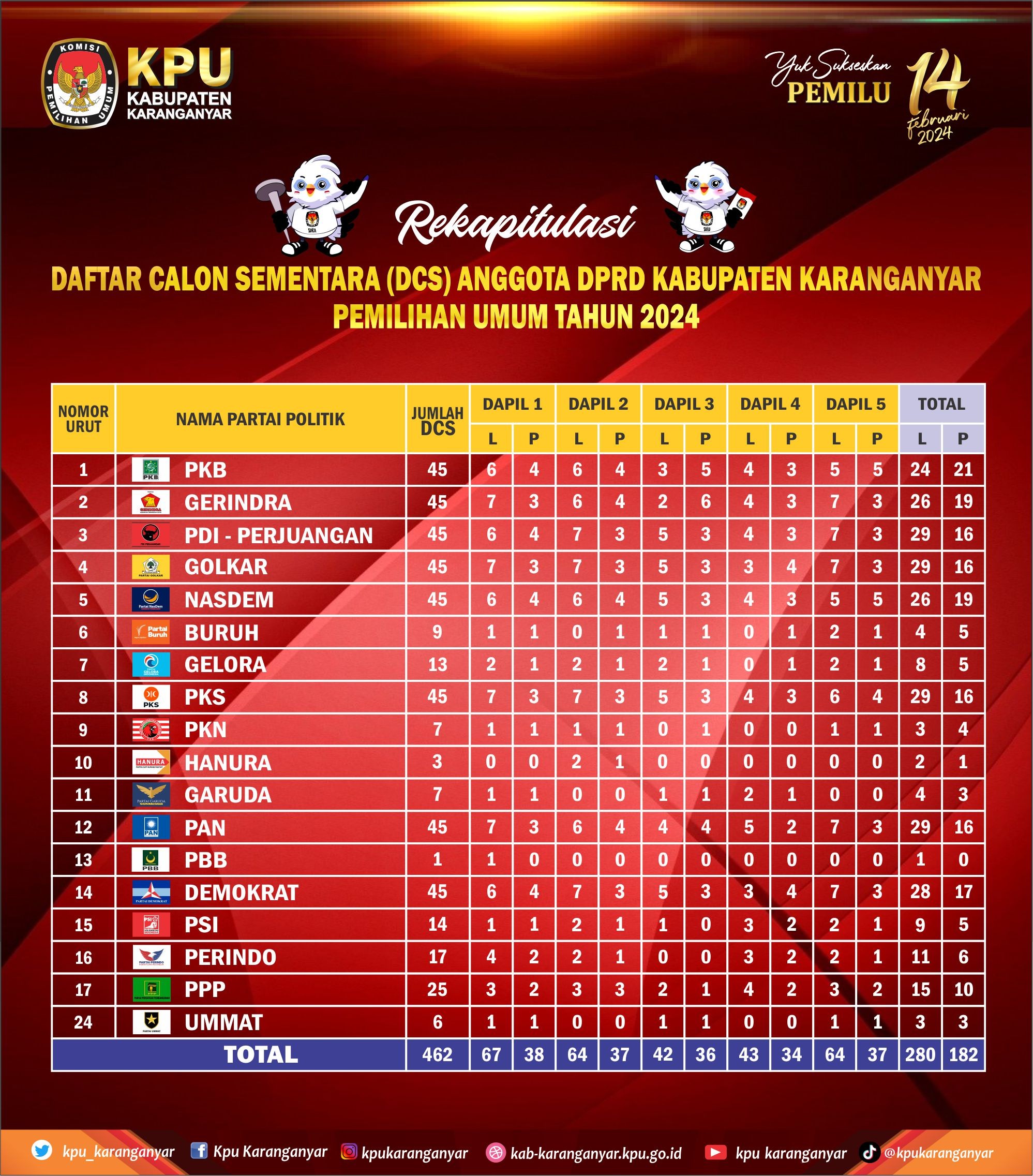 Rekapitulasi Daftar Calon Sementara (DCS) Anggota DPRD Kabupaten Karanganyar Pemilihan Umum (Pemilu) Tahun 2024.