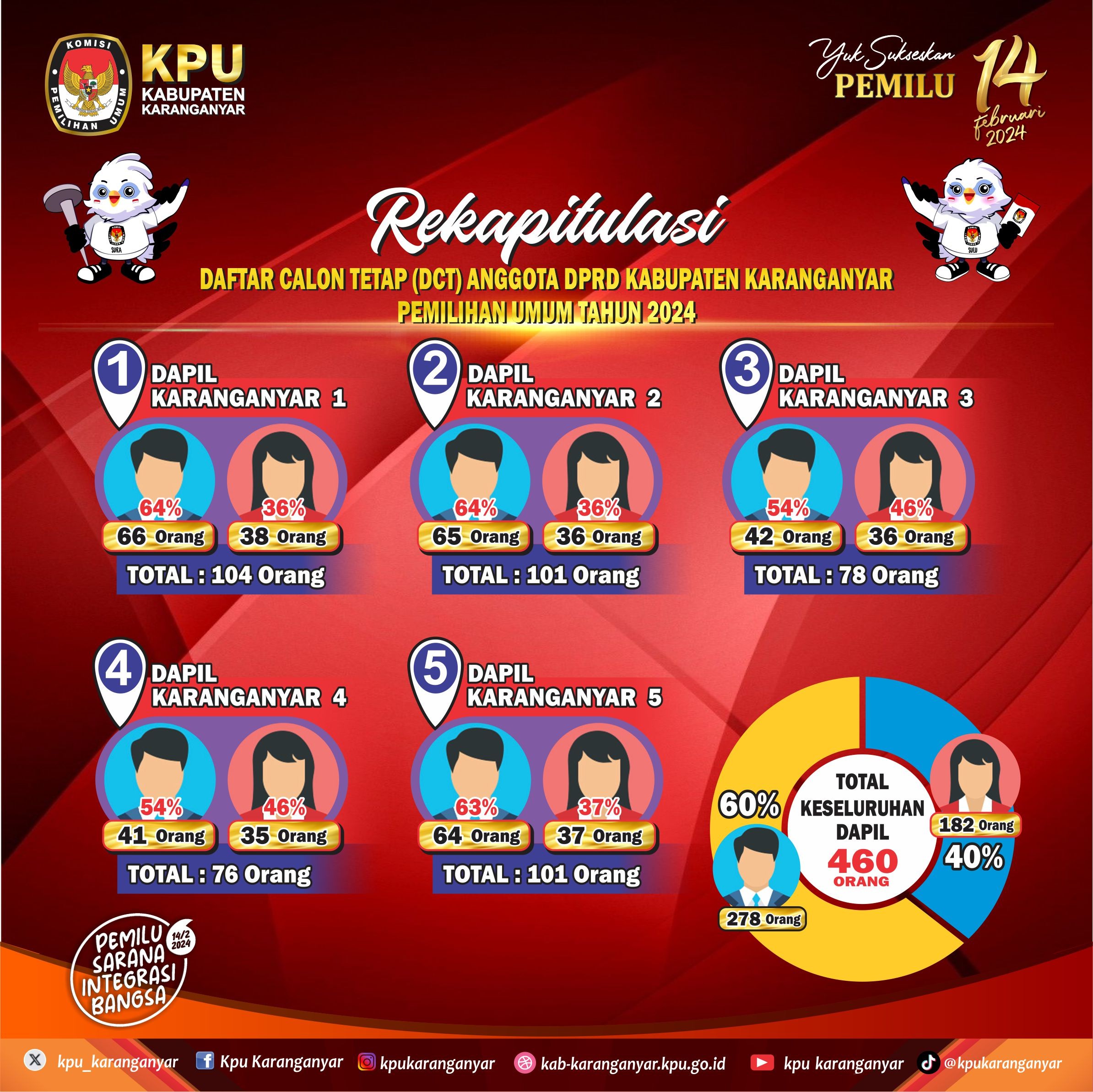 Rekapitulasi Daftar Calon Tetap (DCT) Anggota DPRD Kabupaten Karanganyar Pemilu 2024
