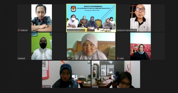 KARANGANYAR – Satuan Tugas (Satgas) Penyelenggaraan Sistem Pengendalian Intern Pemerintah (SPIP) Dilingkungan KPU Karanganyar melakukan koordinasi dalam menyiapkan pelaporan. Koordinasi dipimpin langsung Ketua KPU Karanganyar, Kamis (04/02/2021).