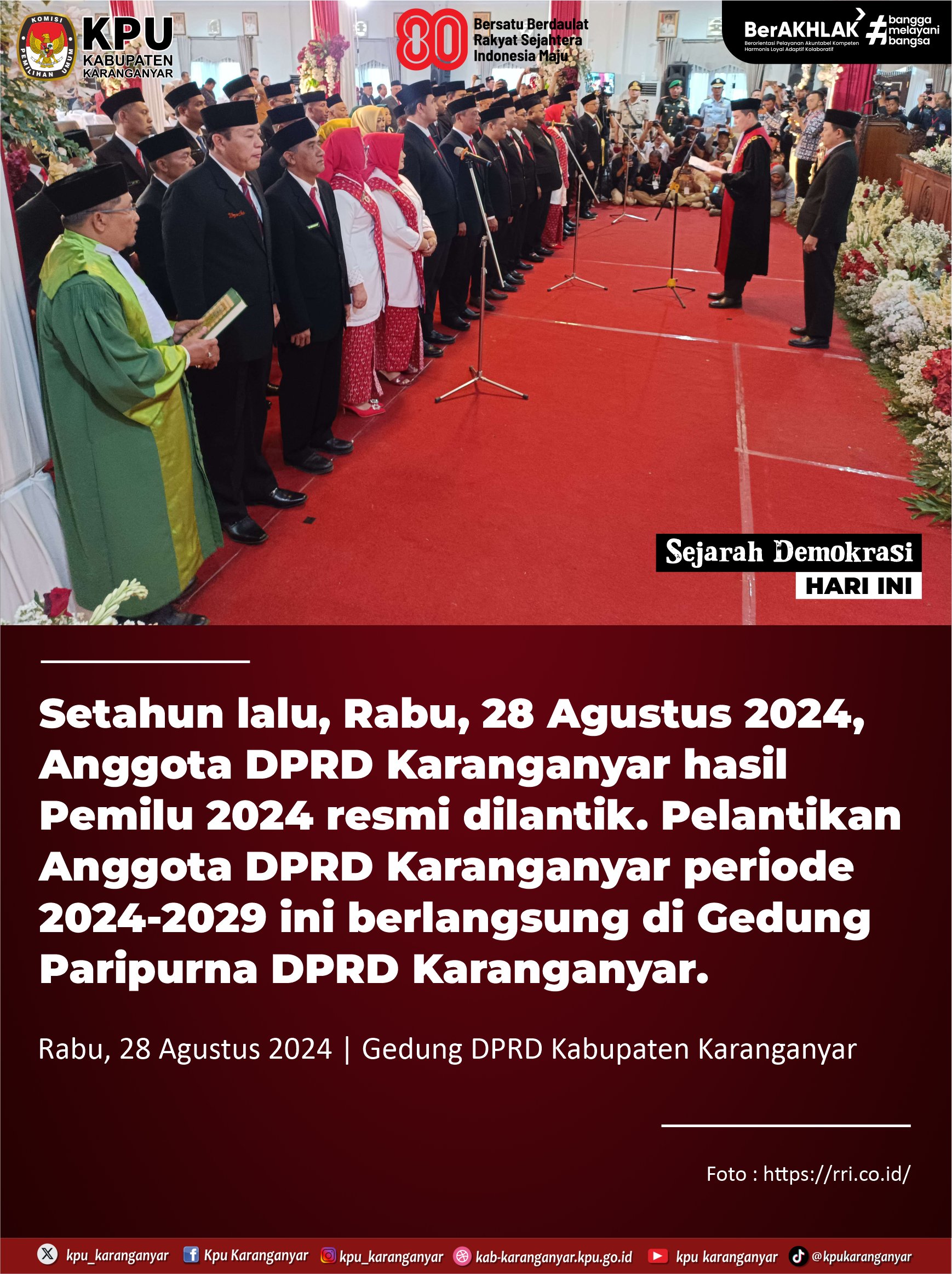 Sejarah Demokrasi Hari Ini - Pelantikan Anggota DPRD Karanganyar 2024
