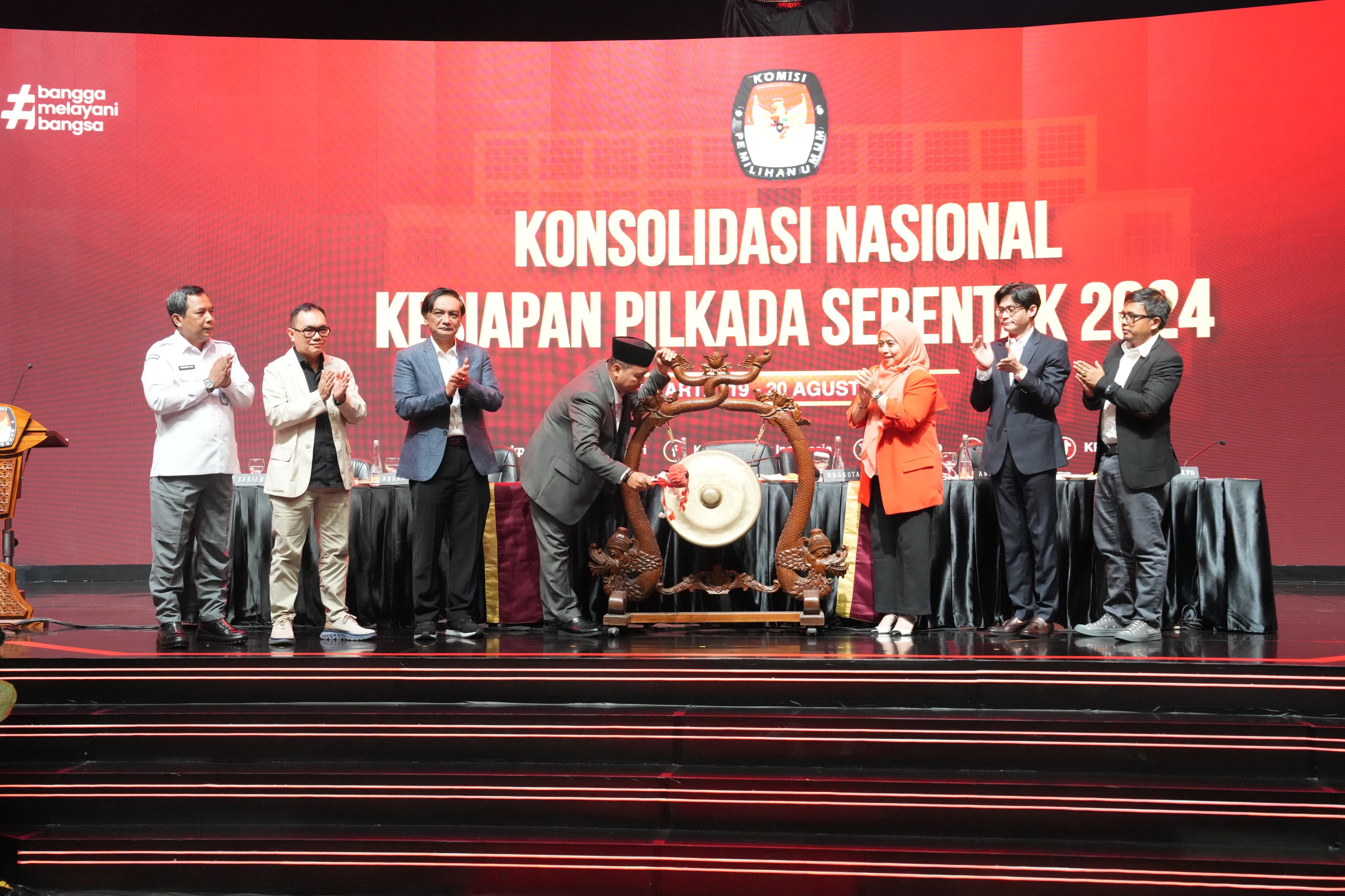 Hal tersebut disampaikan Ketua KPU Mochammad Afifuddin saat membuka kegiatan Konsolidasi Nasional Kesiapan Pilkada Serentak 2024, di Jakarta (19/8/2024). Kegiatan ini juga dihadiri Anggota KPU Yulianto Sudrajat, Parsadaan Harahap, August Mellaz, Idham Holik, Betty Epsilon Idroos, bersama Sekretaris Jenderal KPU Bernad Dermawan Sutrisno.