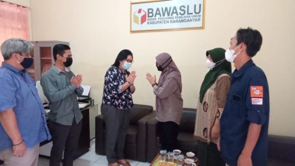 Ketua KPU Karanganyar, Triastuti Suryandari, bersama anggota KPU lainnya datang ke Bawaslu sekitar pukul 11 siang. Kedatangan KPU disambut hangat oleh Ketua Bawaslu Karanganyar, Nuning Ritwanita Priliastuti didampingi komisioner Bawaslu Karanganyar.